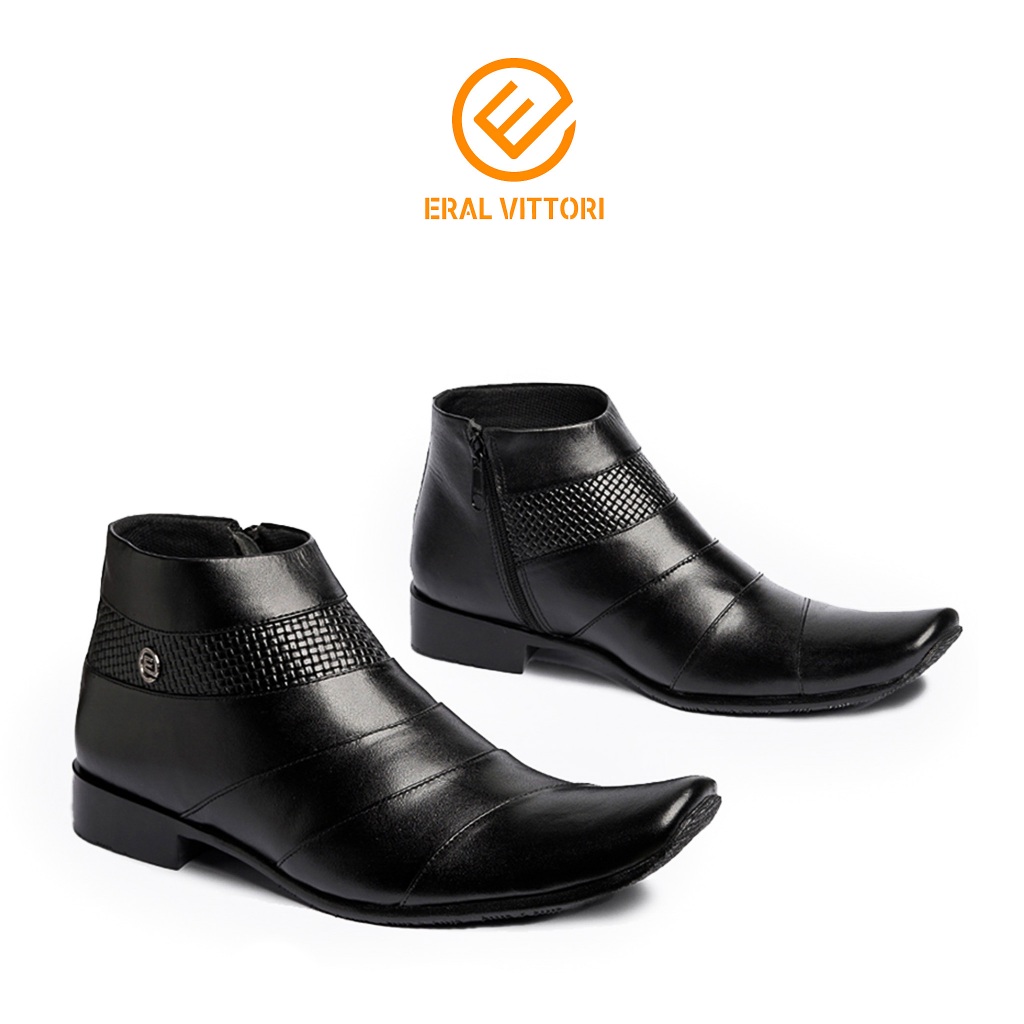 Eral Vittori - Lecter 016 Sepatu Pantofel Boots Tinggi Pria Resleting Samping Formal Kulit Asli