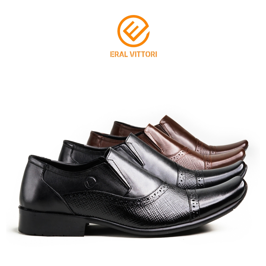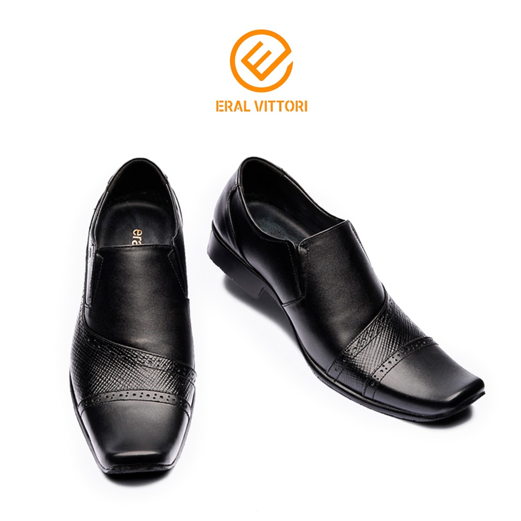 Eral Vittori - Erstep 7095 Sepatu Pantofel Kulit Pria Kantor Formal Casual Slip On Hitam