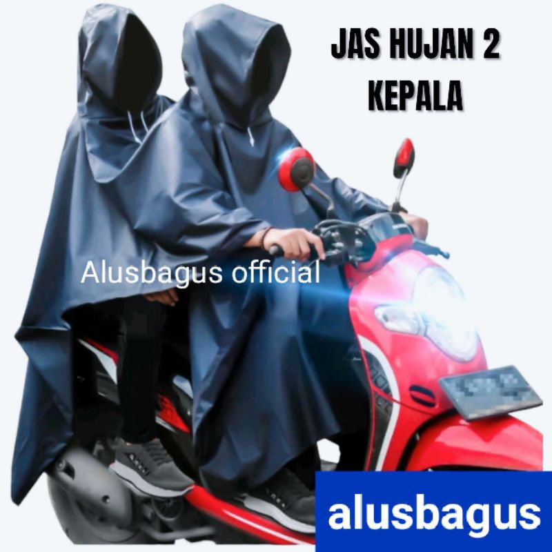 Alusbagus Jas Hujan Motor 2 Kepala Jumbo Ponco 2 In1 Dua Orang Pasangan Doubel Ponco Pria Wanita Tebal 0,25 Anti Rembes