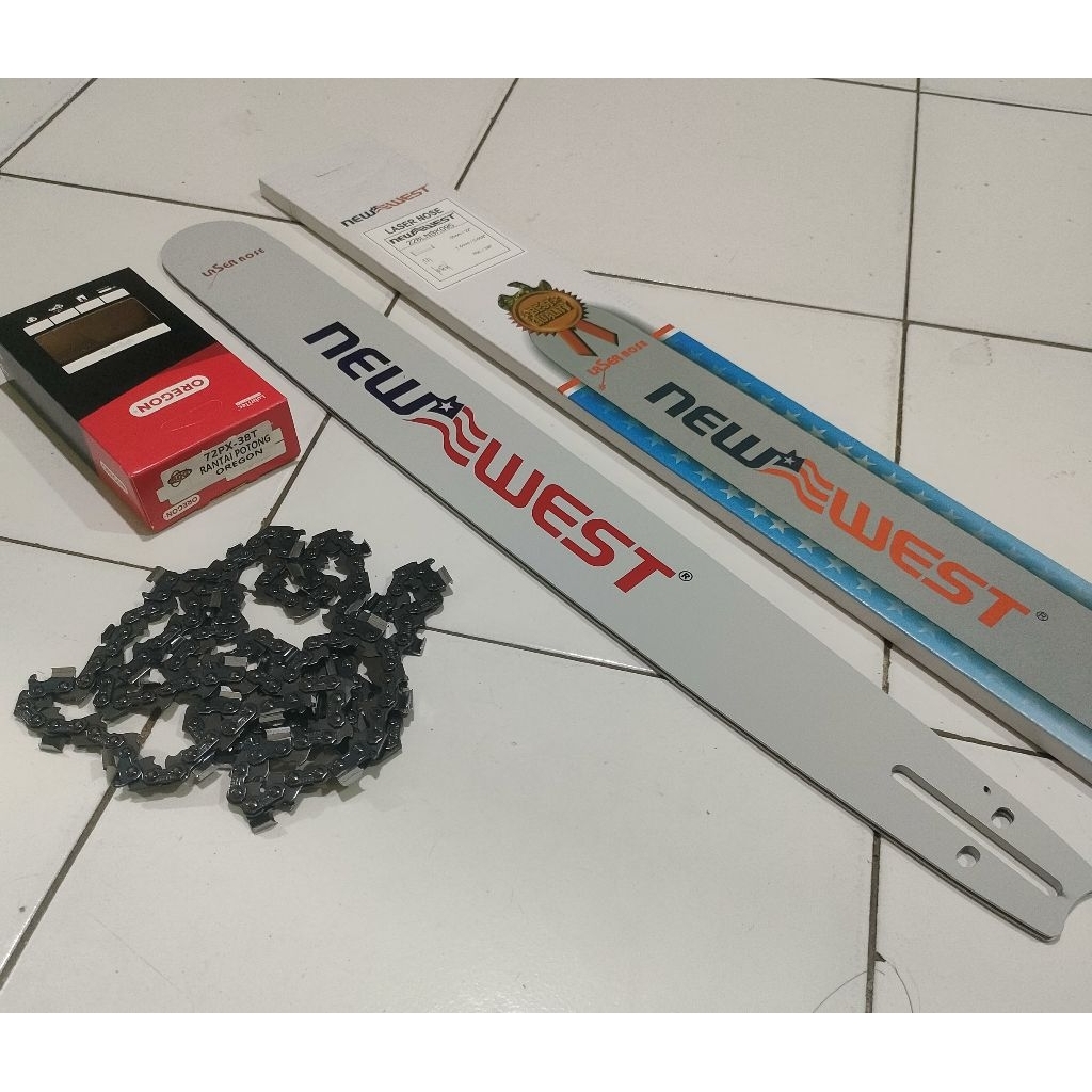 Bar New West 22" + Rantai Potong Oregon 38T Chainsaw Senso 5200 / 5800 / 6800
