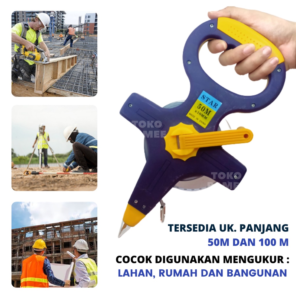 Meteran Plat Besi Tanah Tancap Gulung Roll 50M 100M Alat Perkakas Tukang Pertukangan Bangunan Murah