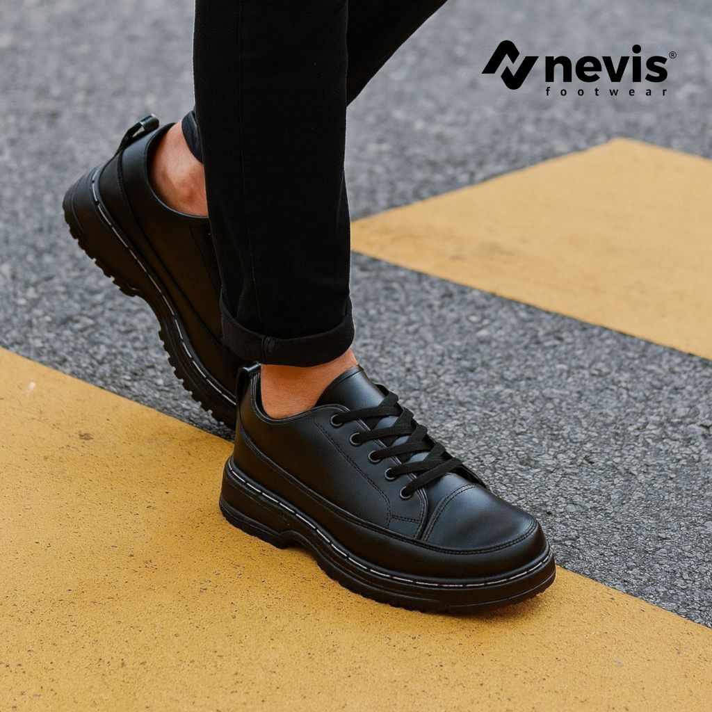 NEVIS Sepatu Pria Formal Marlo Black 39-45 Sepatu Gavi Kerja Kantor Hitam Docmart Shoes Pantofel