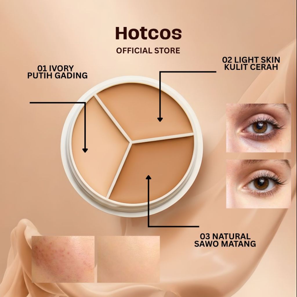 HOTCOS Concealer Tiga Warna | Menutupi Noda Bekas Jerawat & Lingkaran Hitam