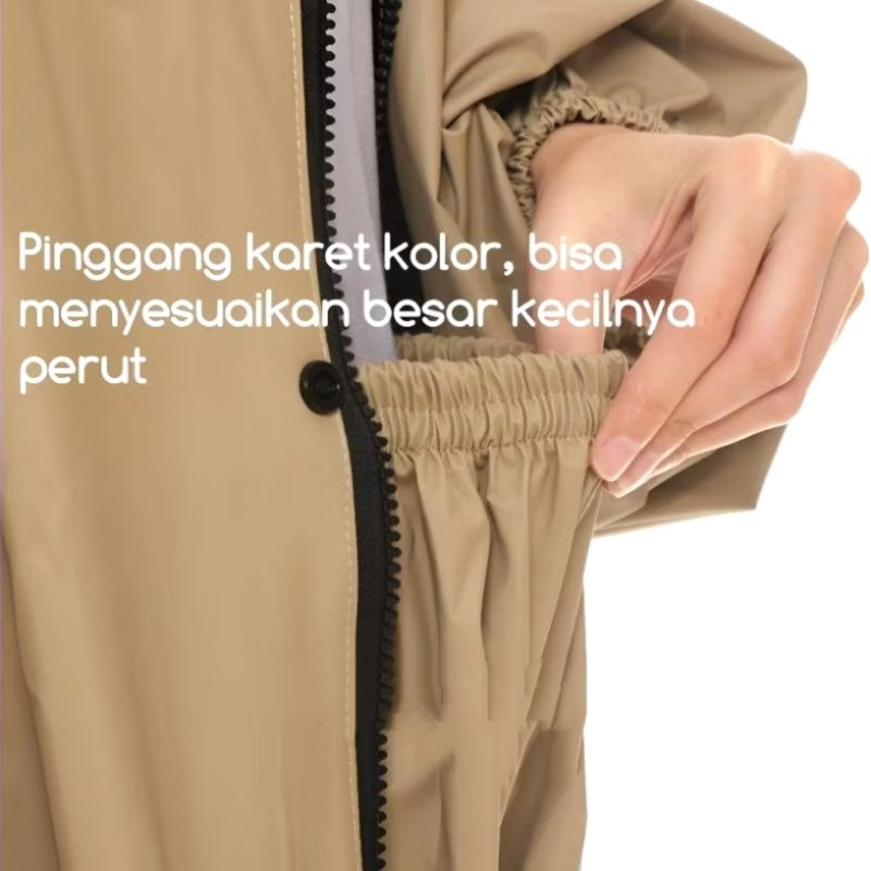 Jas Hujan Raincoat Pria Wanita Setelan Baju Celana by Akula Terbaik Anti Rembes Mocca