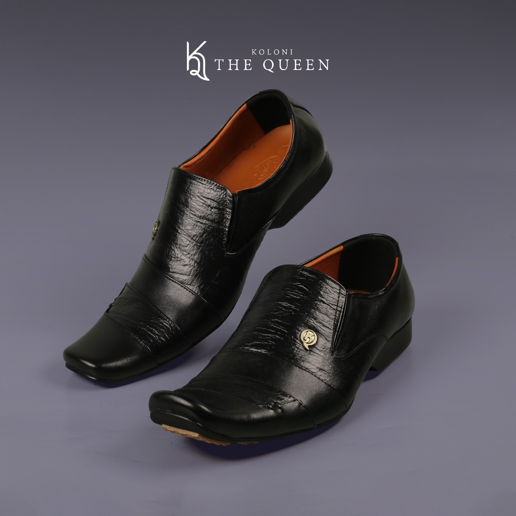 KQ Indonesia Sepatu Pantopel Pria K-504 Original Kulit Asli-Black