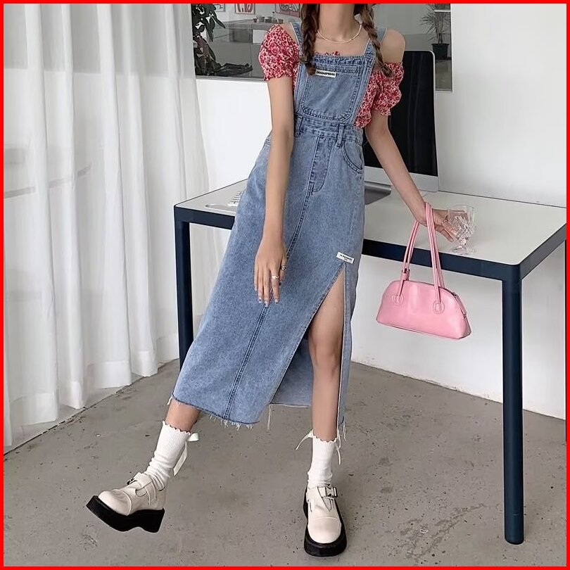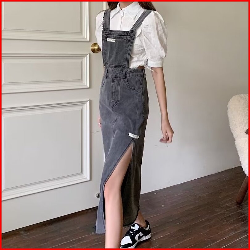 Jumpsuit Wanita Overall Skirt Denim Rok Kodok Belahan Samping-jp008