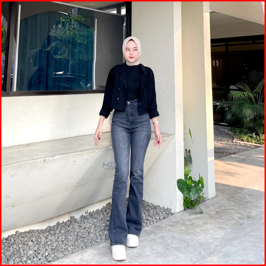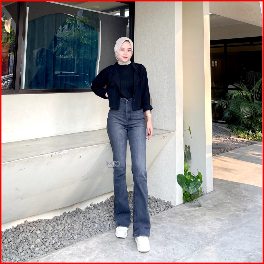 Mcojeans Ootd Sz 27-34 Highwaist Cutbray Jeans Lovy Black Shadow Jeans Streatch Melar Celana Panjang Wanita