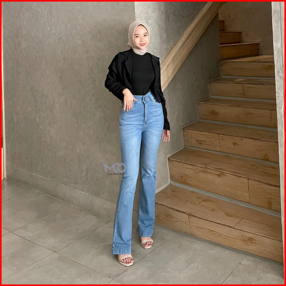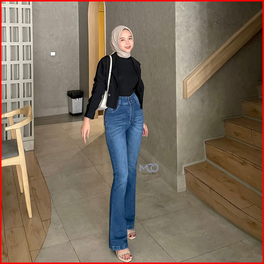 Mcojeans Hw Cutbray Livy Long Pants Jeans Stretch Dark Blue Kancing 2 Boot Cut