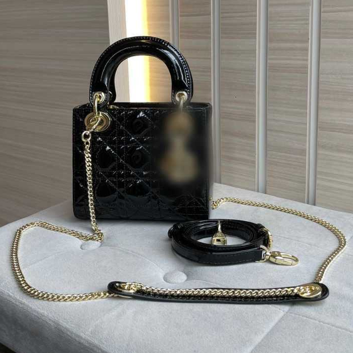 Mini Lady Bag Wanita Patent Cannage Calfskin Leather
