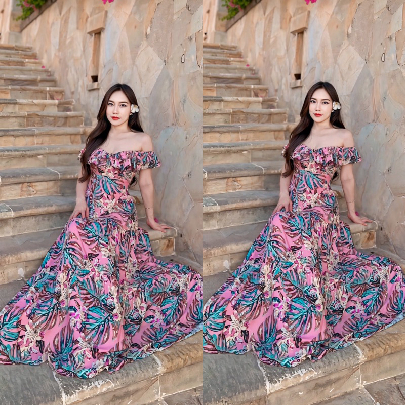 MONETE Galina Dress / dress pantai bali / maxi dress / sabrina / dress panjang