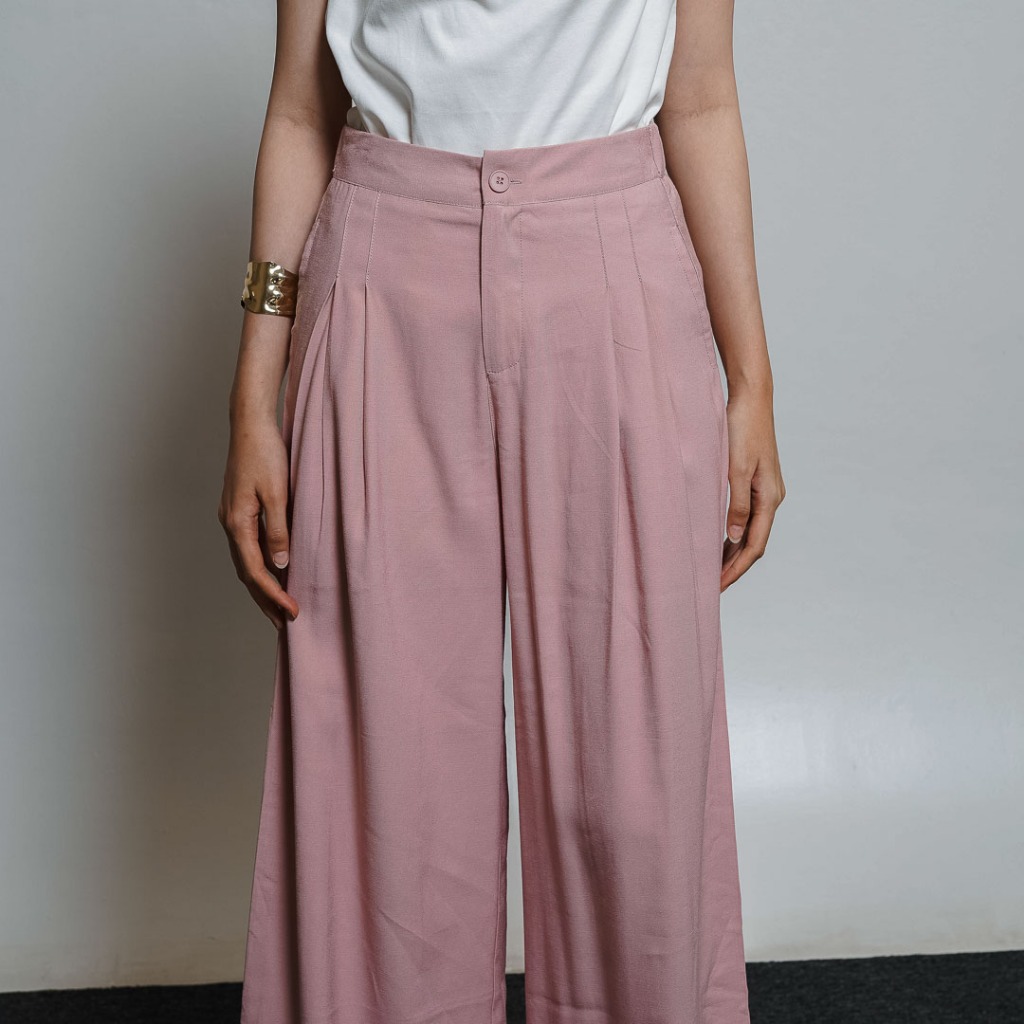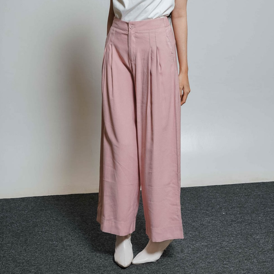 This Is April Celana Panjang Kulot Wanita Highwaist Kai Pants Pink dan White
