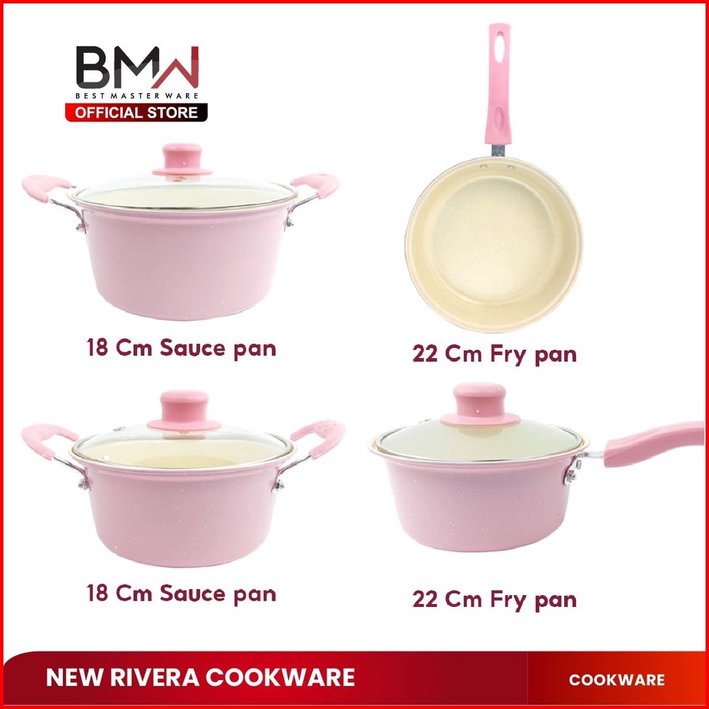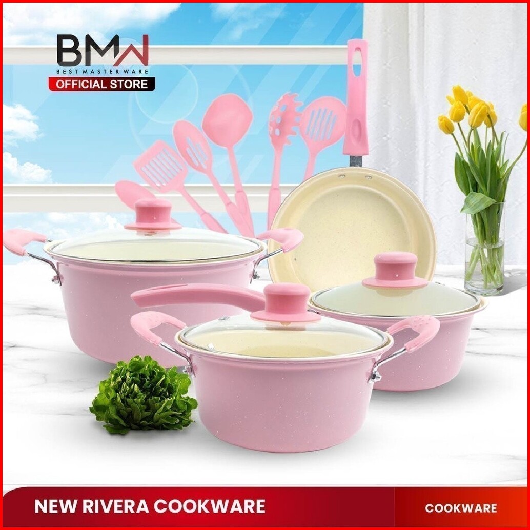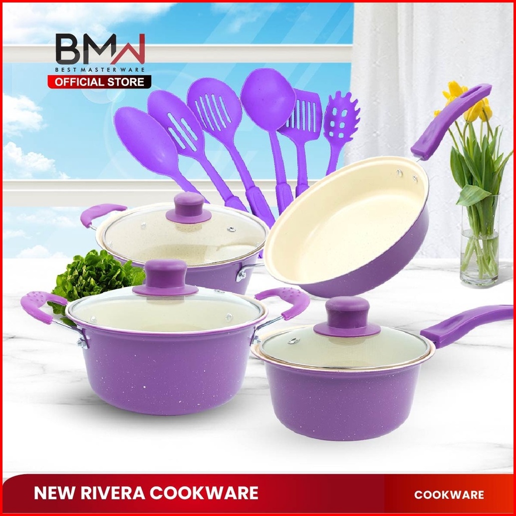 Bmw Kitchen Ware - Teflon Riverra Panci Set Warna Frypan Saucepan Cookware Set Free Spatula 13pcs