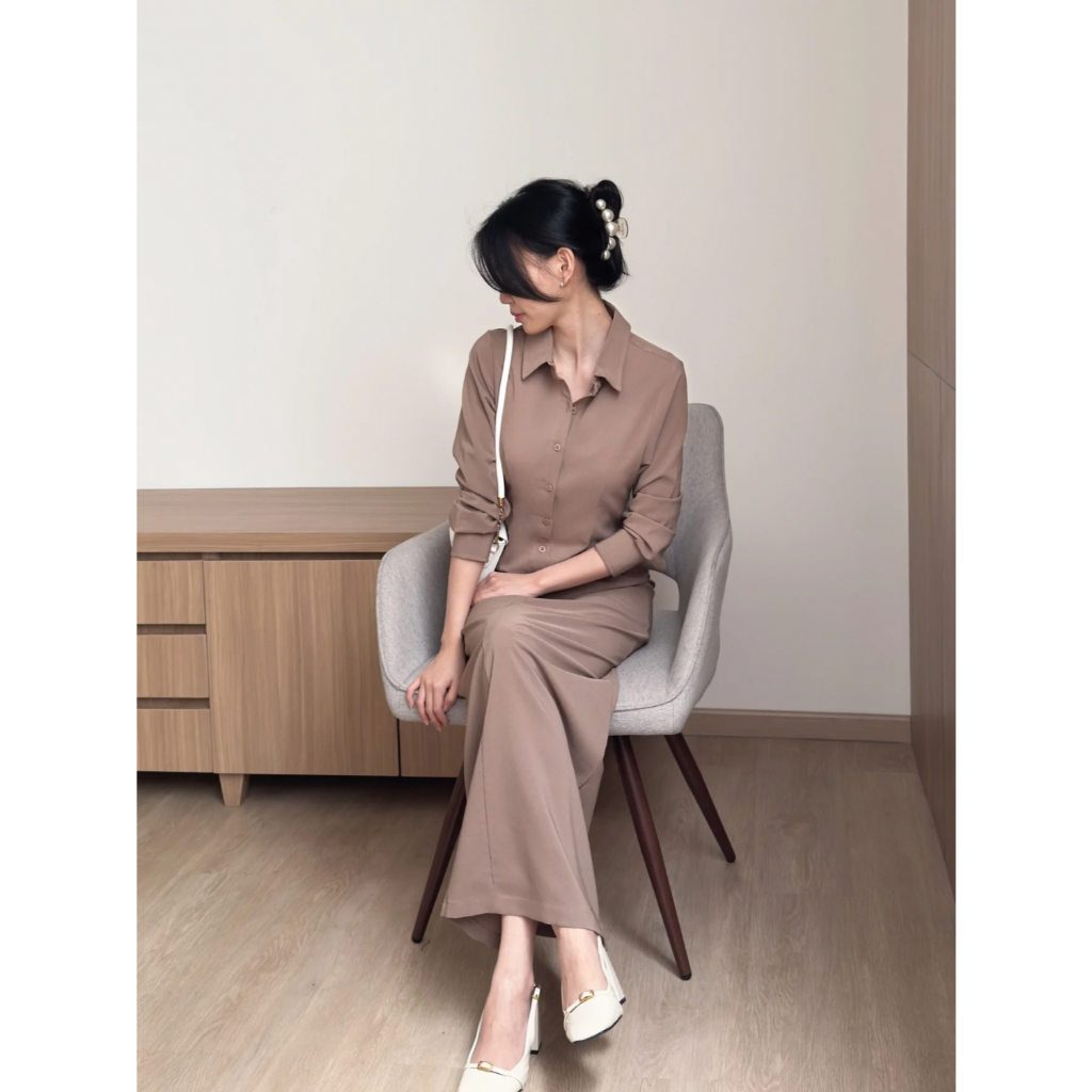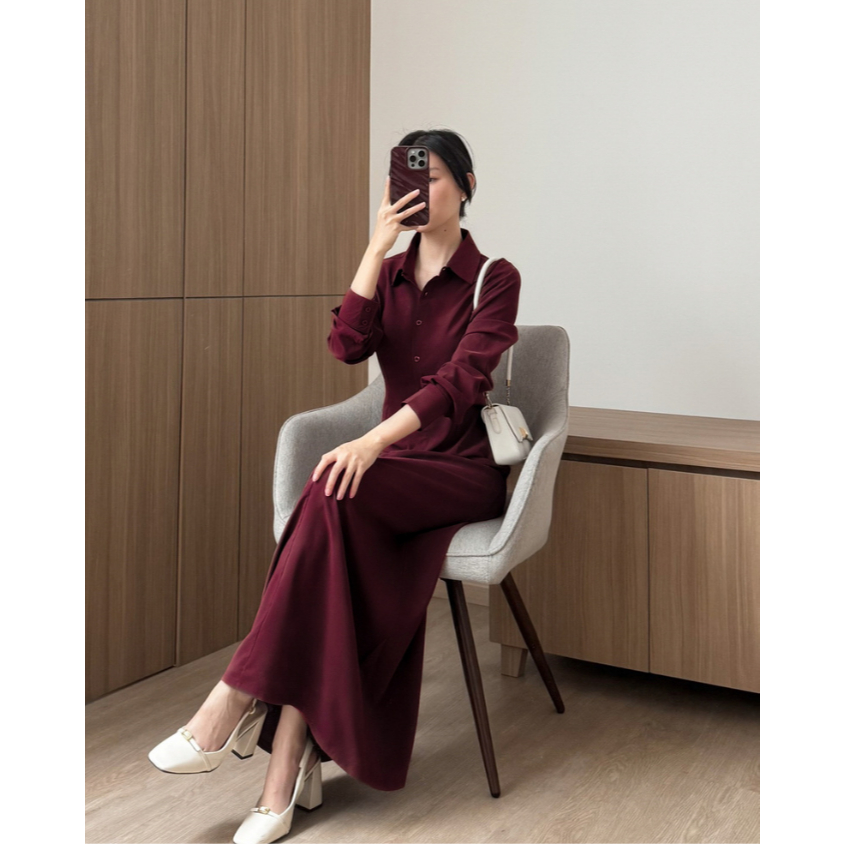 Kadaka D-0258 Long Sleeves Waist Fitted Maxi Dress | Dress Panjang Wanita Lengan Panjang