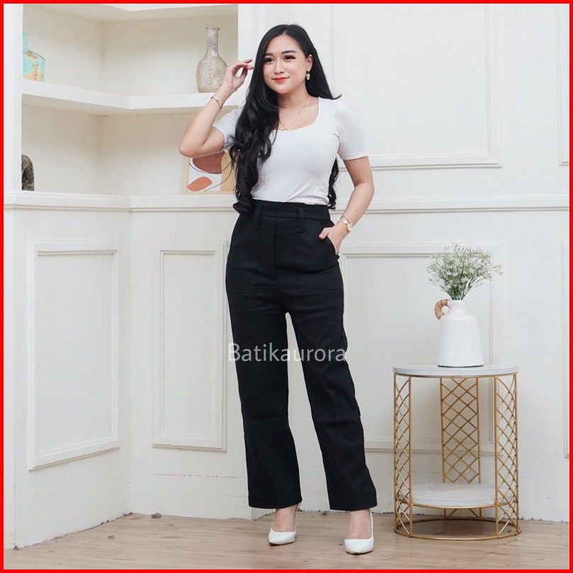 Diora Highwaist Pants Kulot Straight Cut Pants Wanita