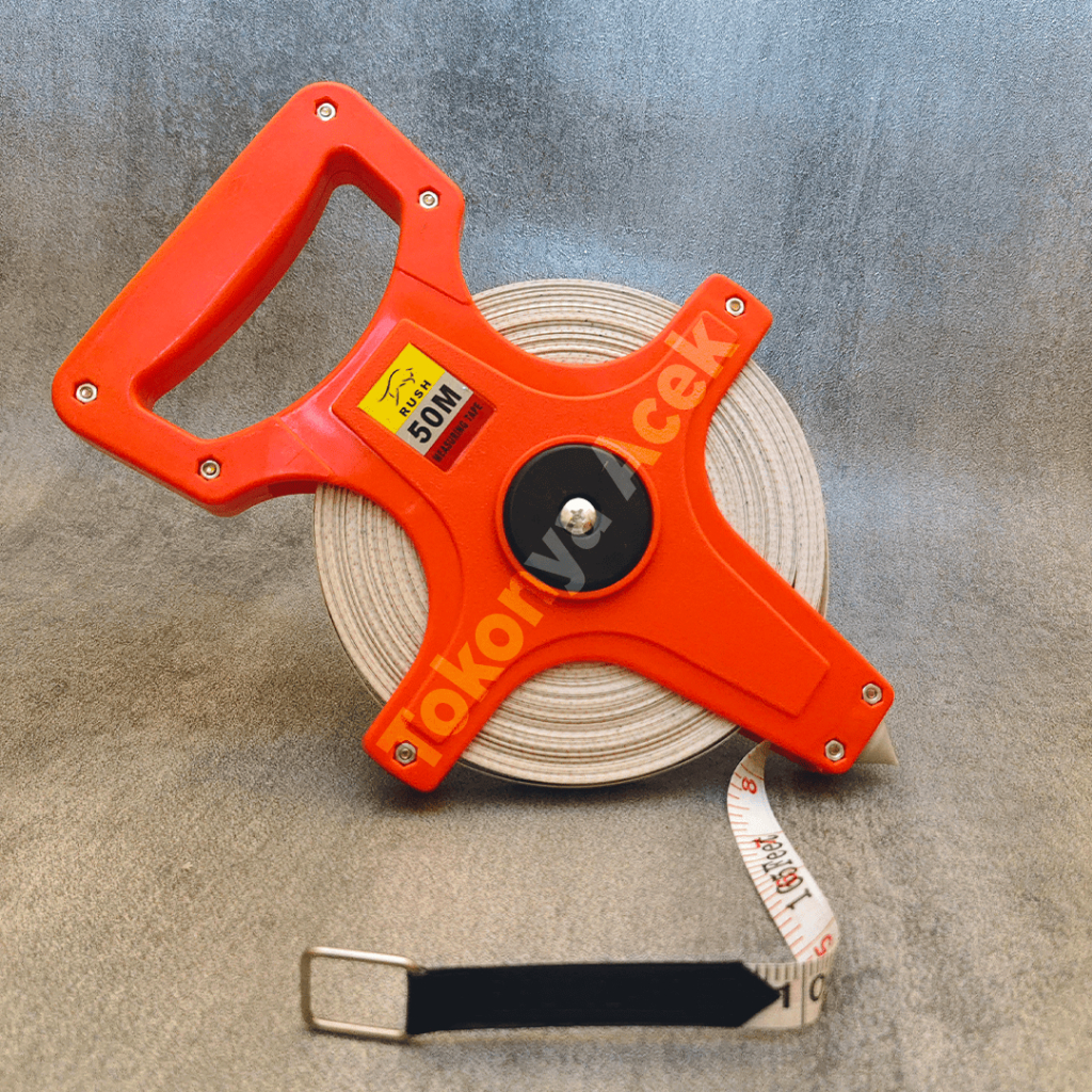 Meteran Fiber PVC 100m Tancap Tanah Roll Gulung Merk Rush - Meteran Tanah 100 Meter