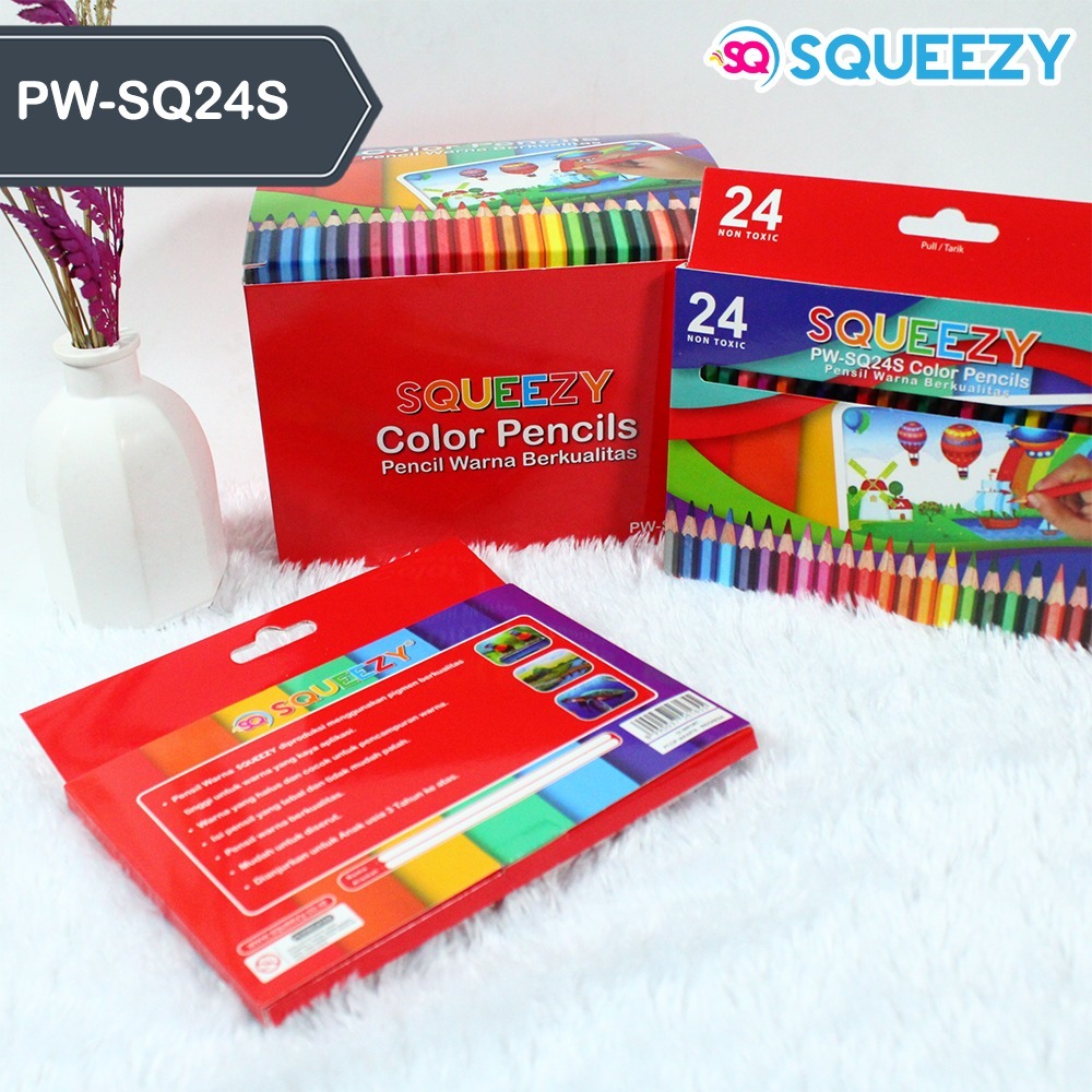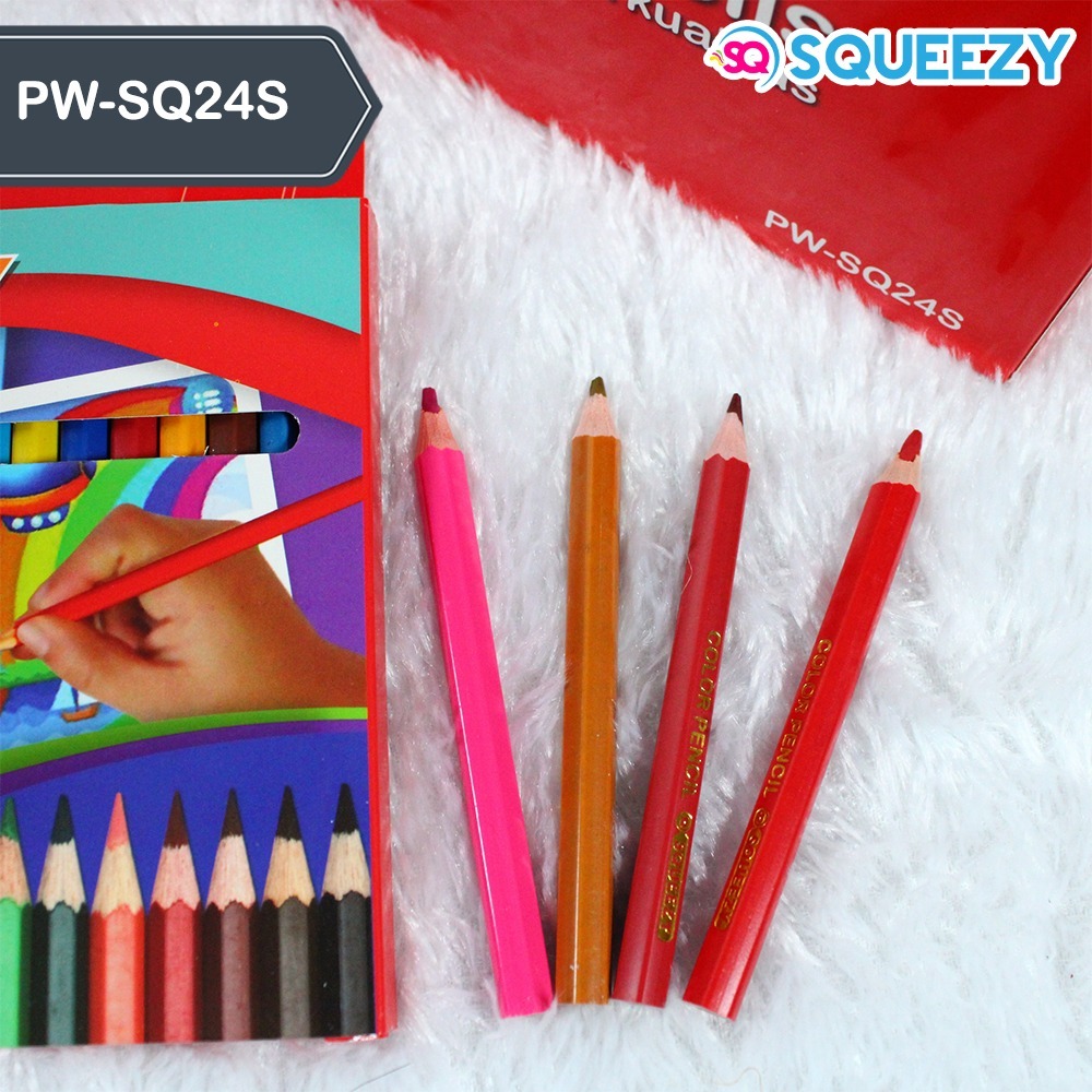 Pensil Warna Squeezy Pendek 24 Warna Murah / Coloring Pencil PW-SQ24S