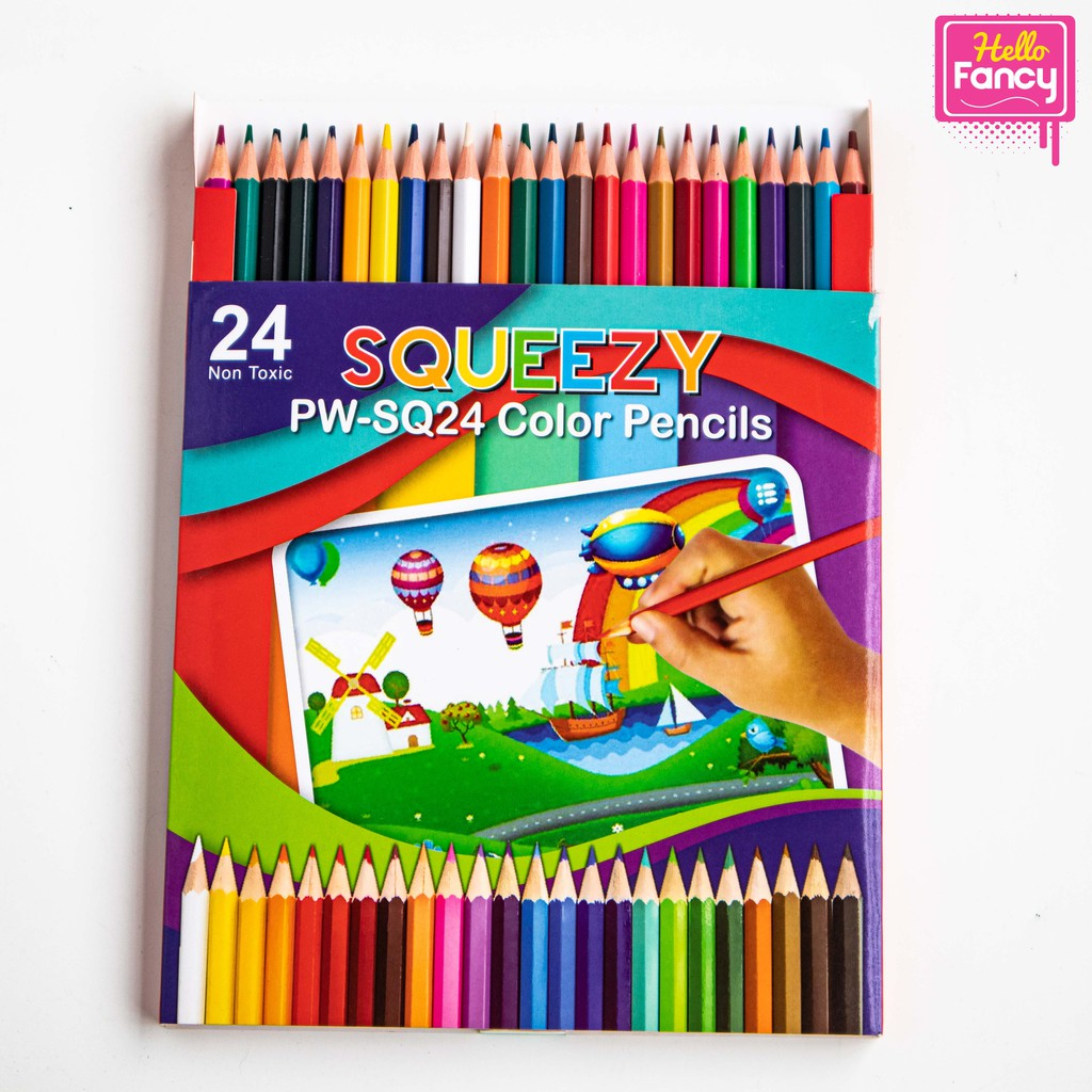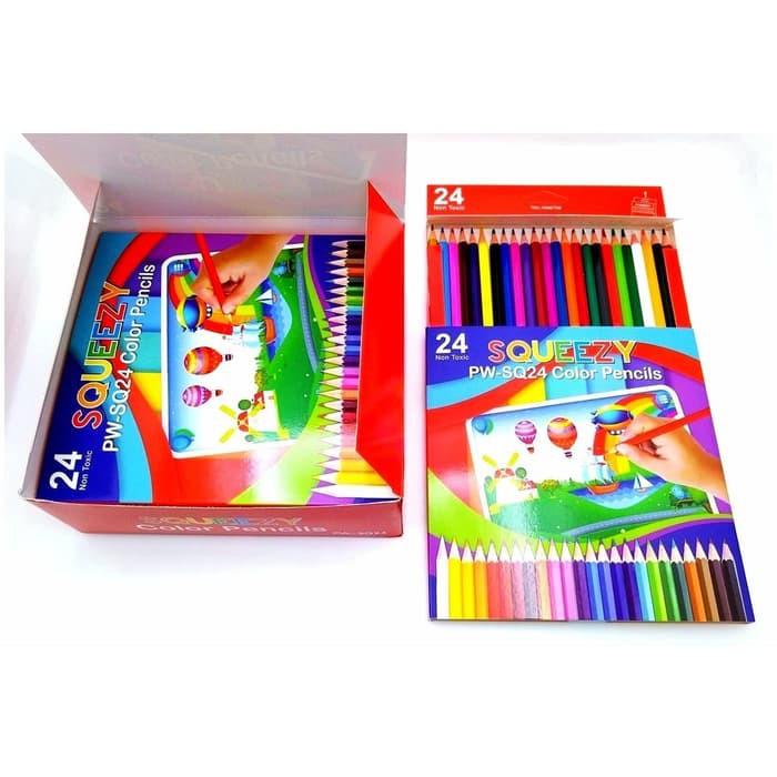 GROSIR Pensil Warna Panjang Squeezy / Pensil Warna 24 Warna / Colour Pencil PW-SQ24