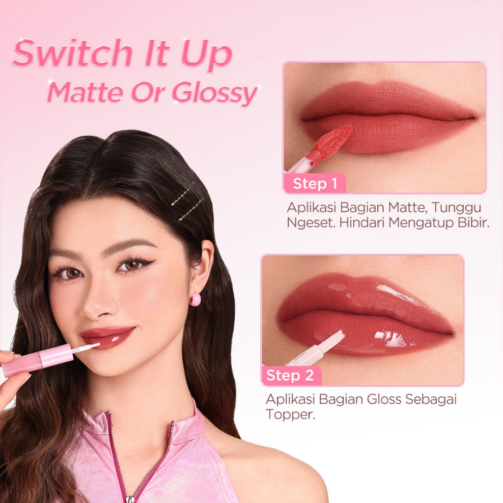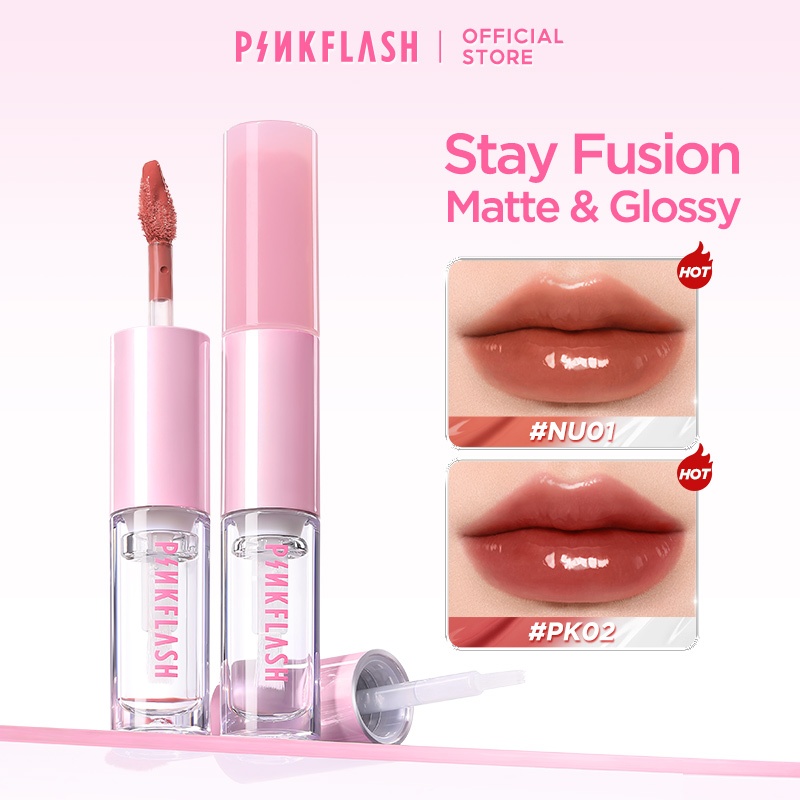 PINKFLASH 2 IN 1 Matte Glossy Lipstick Transferproof Waterproof Lightweight Non-sticky