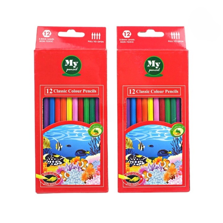 Pensil Warna 12 Pcs Mini MY PENCIL | 12 Warna Color Pencil Pendek / Panjang | Coloring Set Anak Paper Box Classic