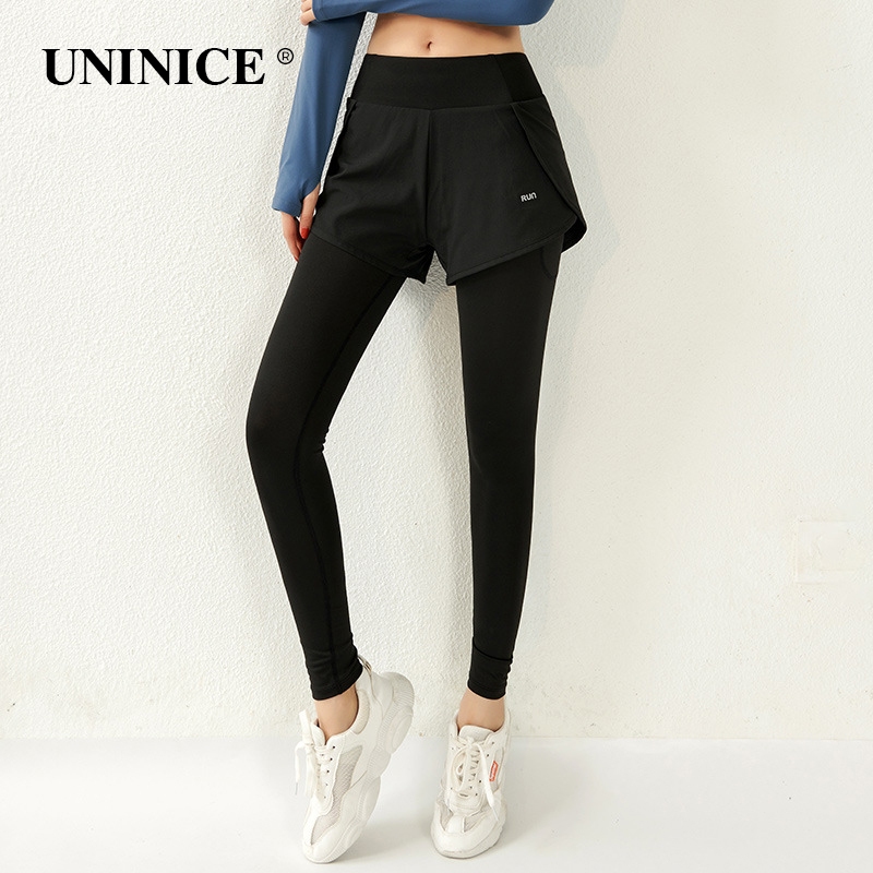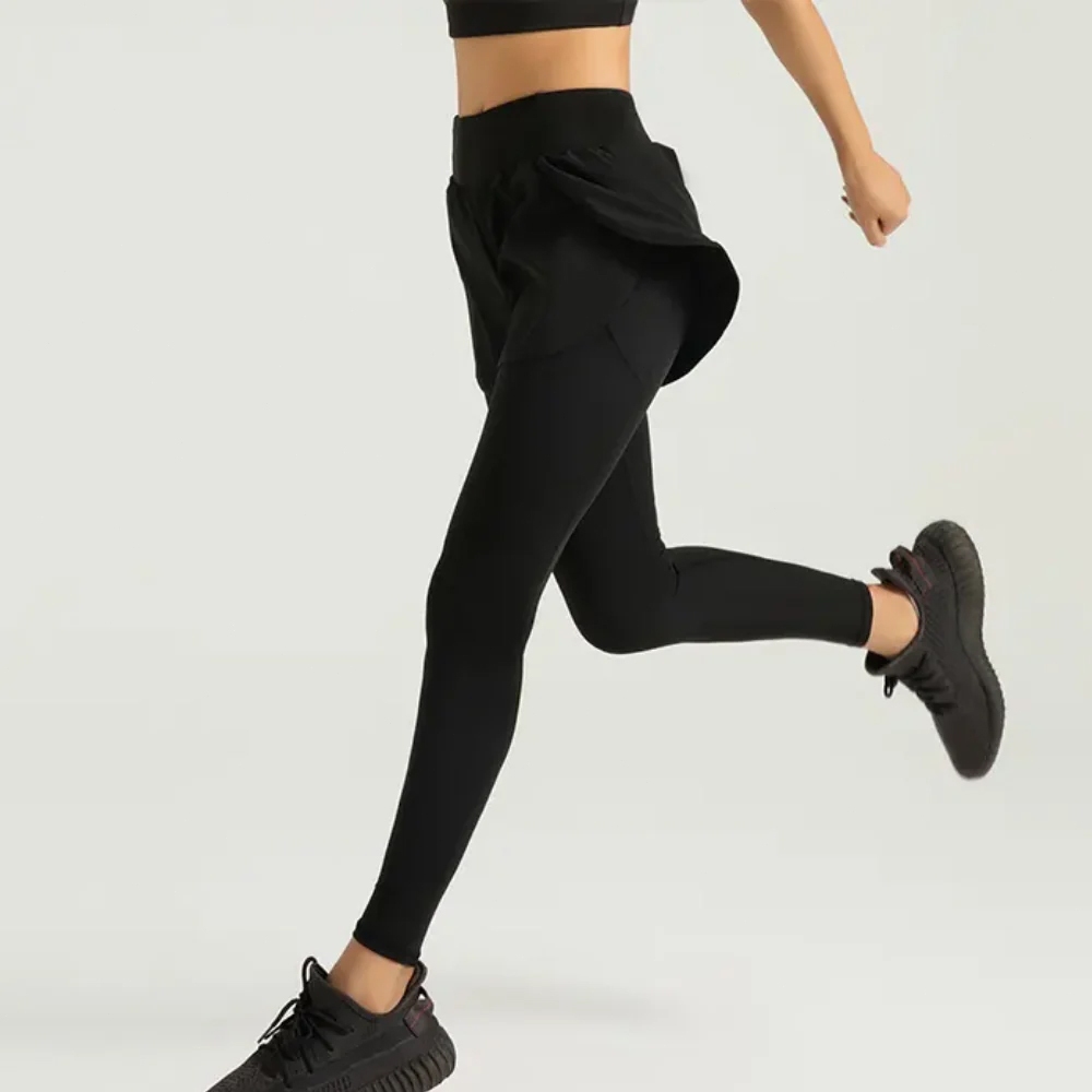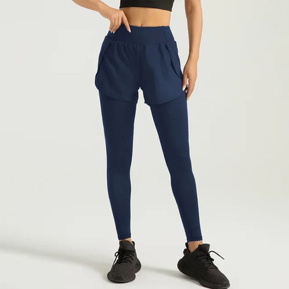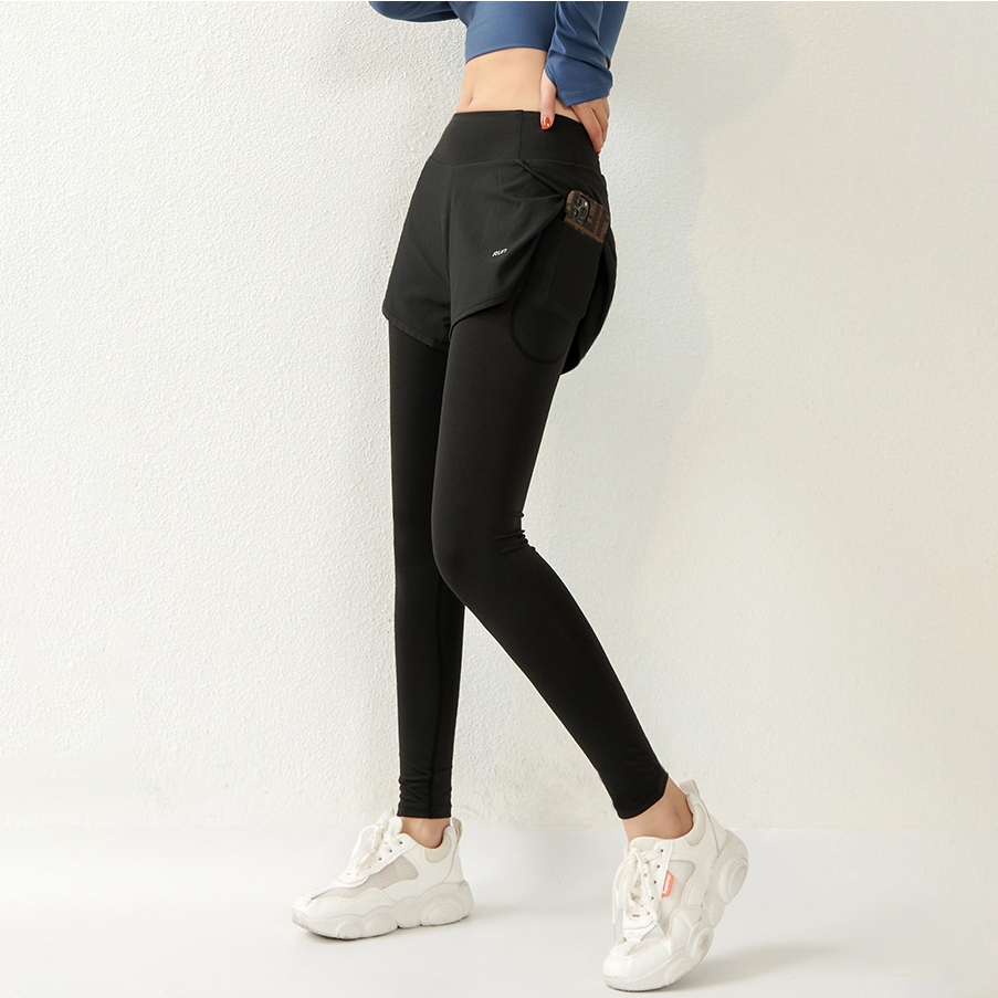 Celana Wanita Kebugaran Pinggang Tinggi Pakaian Luar Dua Potong Legging Yoga Cepat Kering