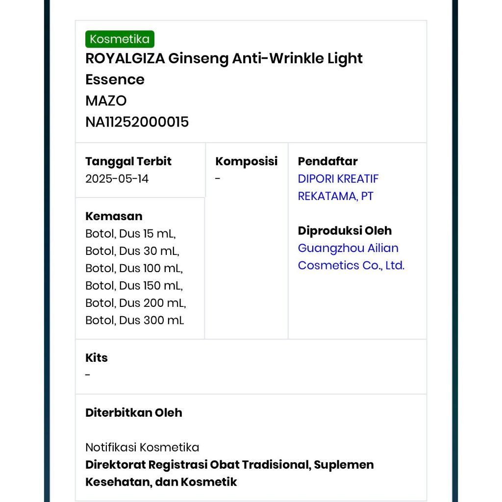 Ginseng Serum Anti Kerutan BPOM 100 ml Atasi Penuaan Wajah Kembali Muda Ginseng Wrinkle