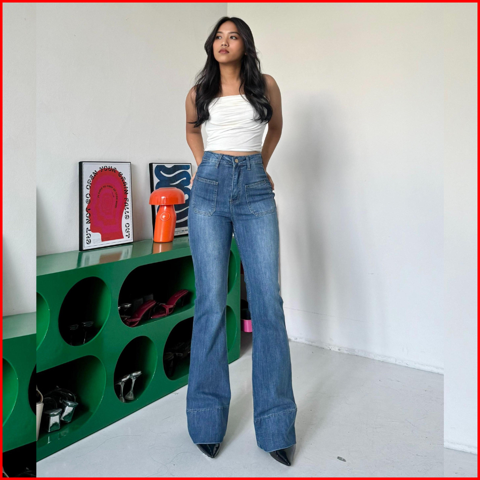 Ladouce - Kelly High Waist Cutbray Jeans Celana Stretch Flare Panjang Wanita