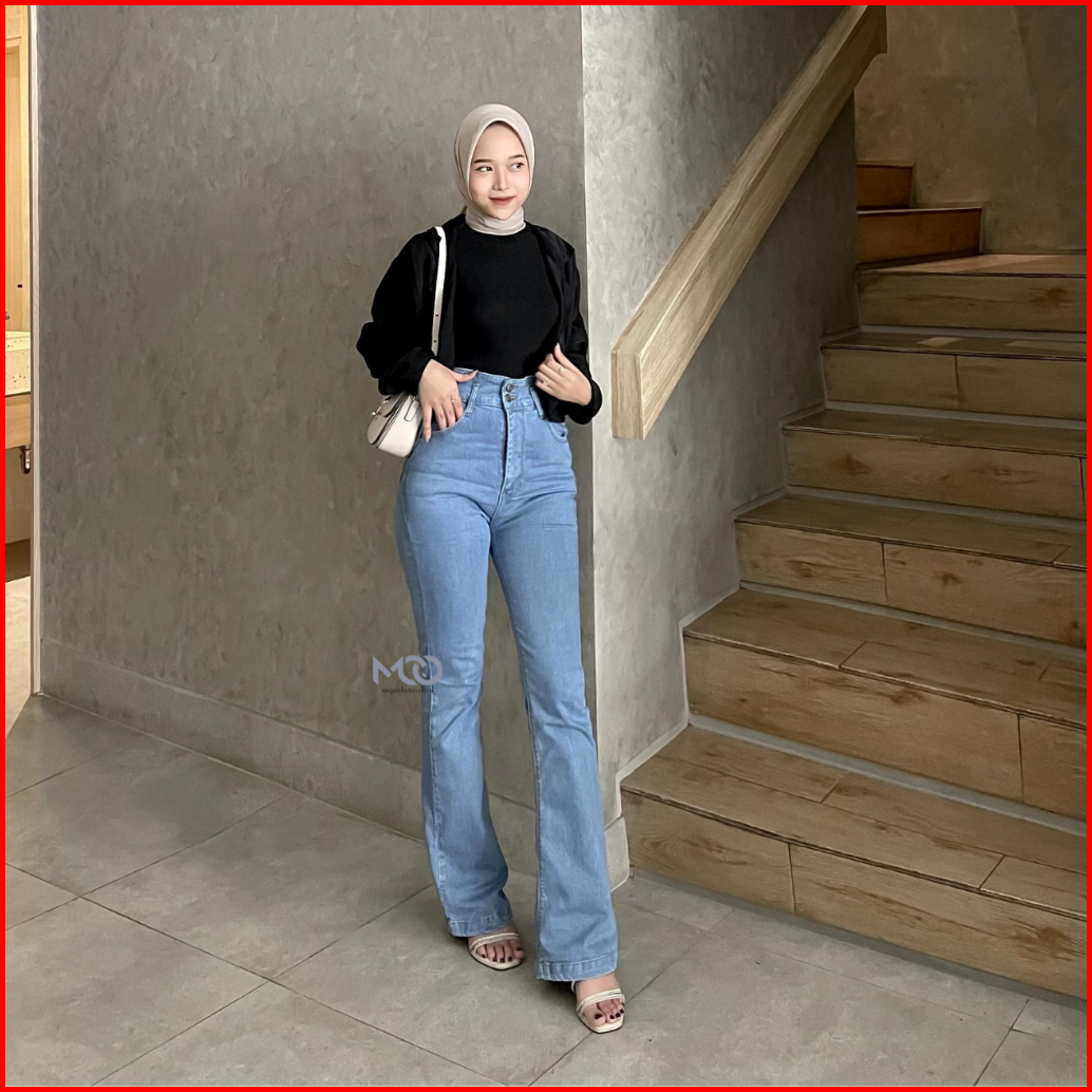 Mcojeans Ootd Sz 27-34 Livy Highwaist Cutbray Kancing 2 Celana Panjang Wanita