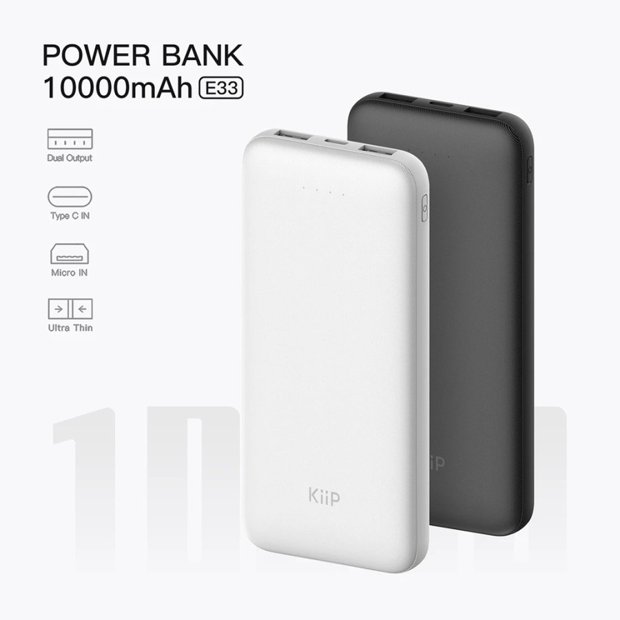 KiiP E33 Powerbank Slim 10000mAh Dual Output USB Power Bank 10000 mAh