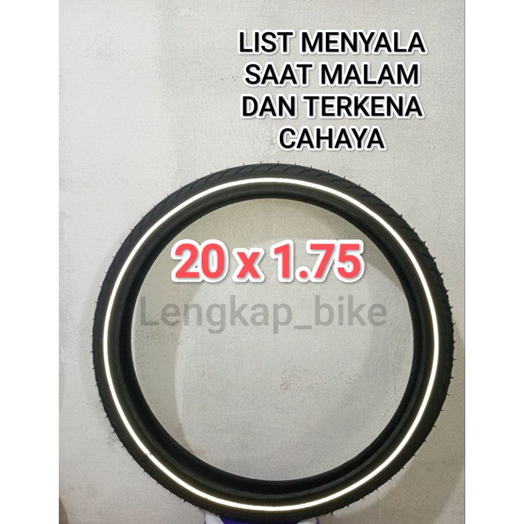 Ban Luar Sepeda Reflektif 20 x 1.75 Swallow ORIGINAL BAN LUAR SEPEDA 20 X 1.75 SWALLOW REFLEKTIF LIST BISA NYALA SAAT GELAP DAN TERKENA CAHAYA