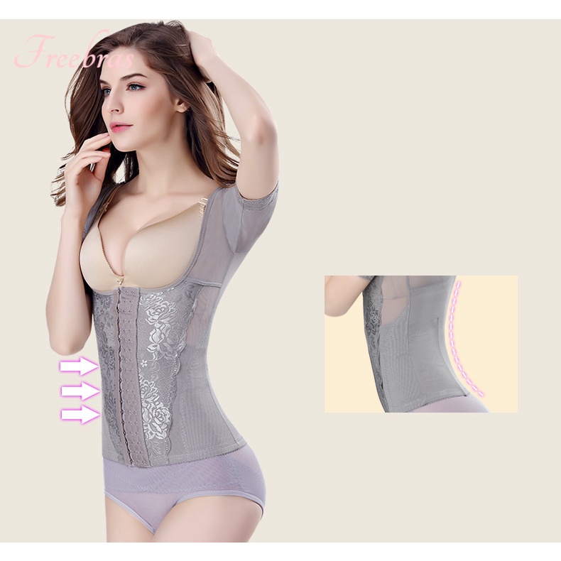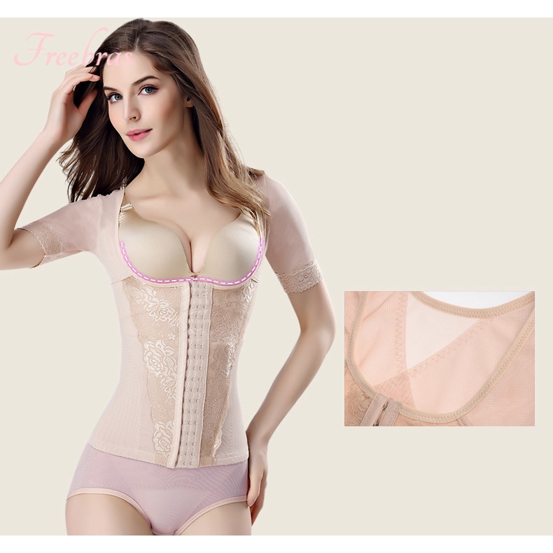 Korset Lengan Pendek Perut Postpartum Tiga Kancing Shapewear Munafie Pelangsing Korset Perut Wanita Pakaian Berbentuk
