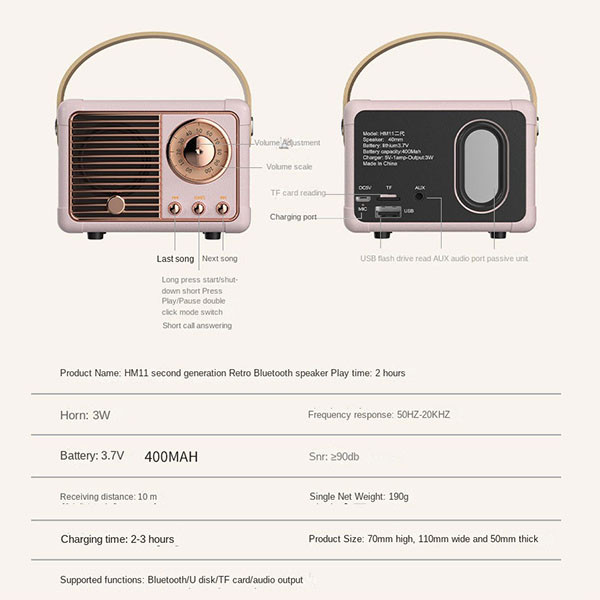 Retro Bluetooth Speaker HM11 - Klasik Pemutar Musik, Sound Stereo, dan Portabel untuk Bepergian