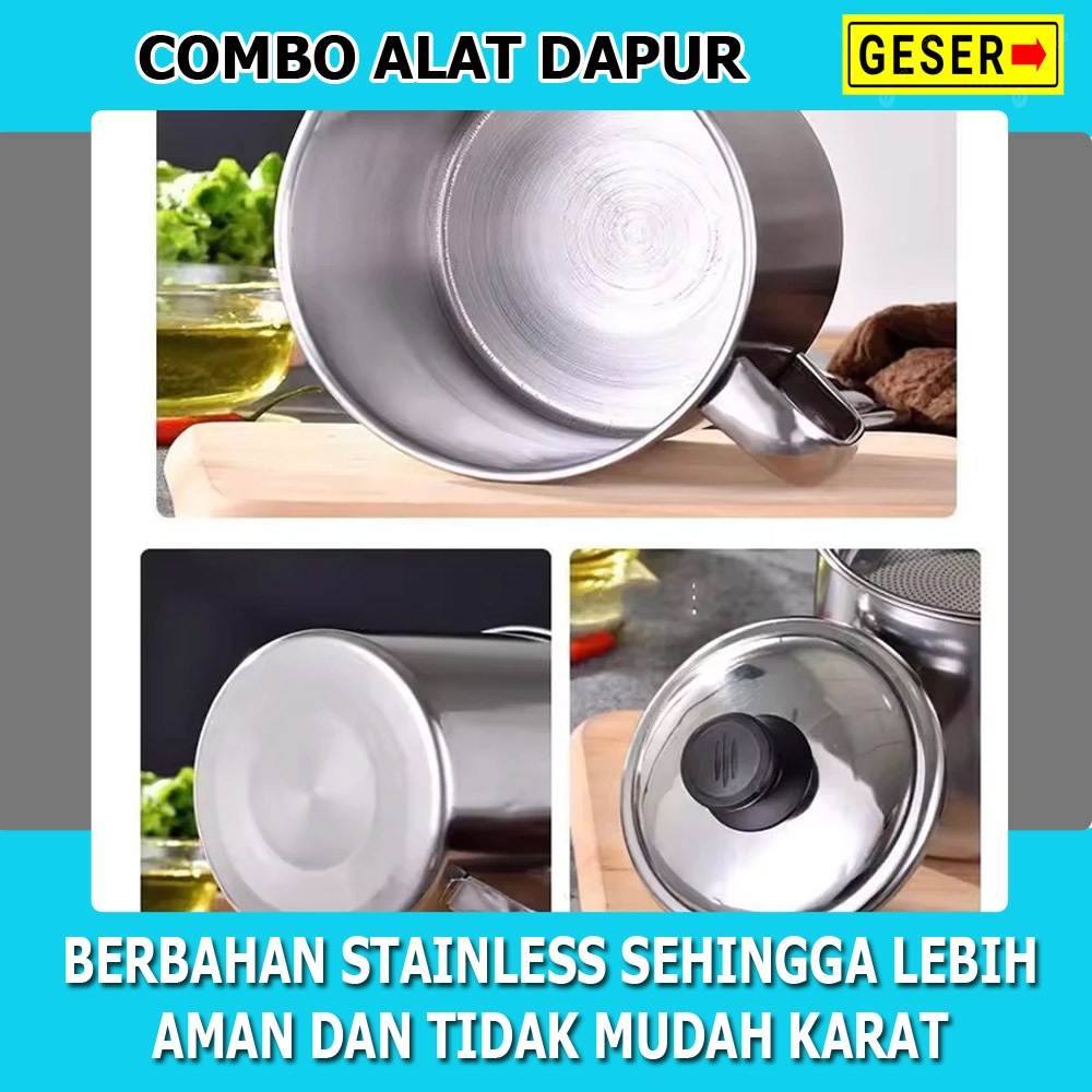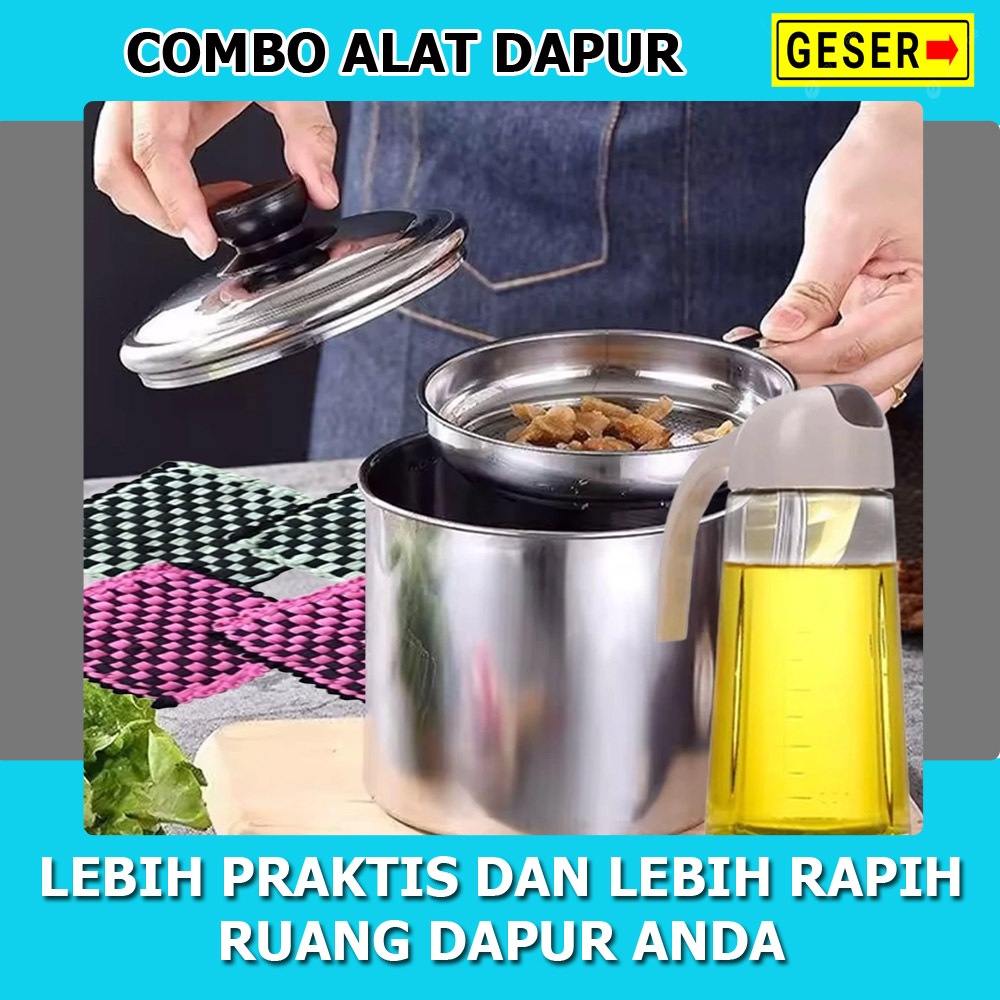 Combo Hemat 6in1 Oil Pot Stainless 1000ml Plus Dispenser Minyak 630ml Dan Lap Cempal 4pcs