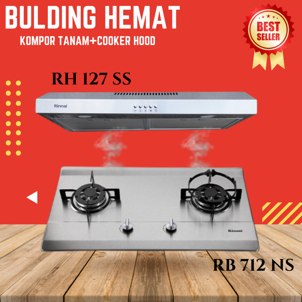 PAKET Hemat kompor rinnai RB 712NS / RB712NS /hood RH 127SS / RH 127 SS Khusus instant