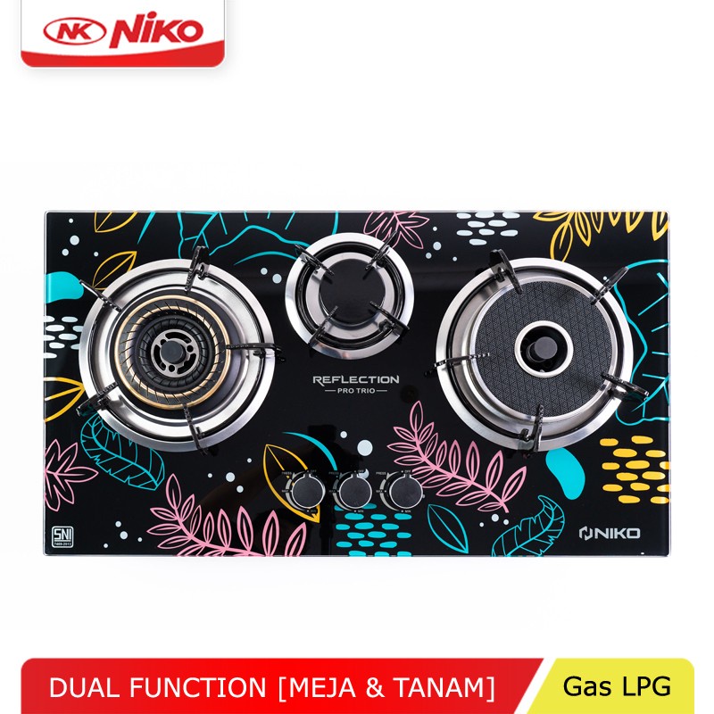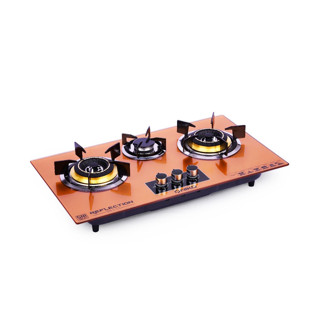 NIKO Kompor Gas 3 Tungku Tempered Glass Reflection Semi Tanam Garansi Resmi