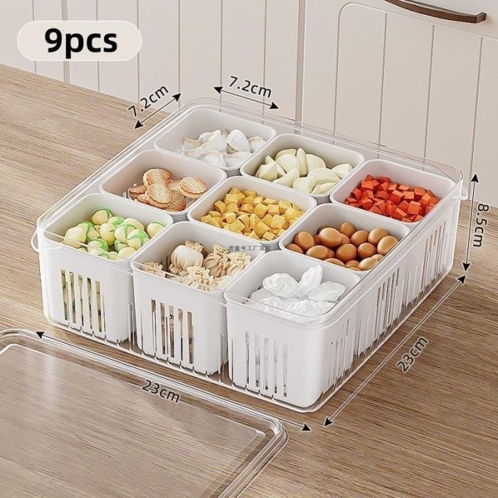 SBN78 Kotak saringan wadah cabai bawang buah dengan penutup saringan air toples 9 Sekat 6 SEKAT / TEMPAT BUMBU DAPUR DEN