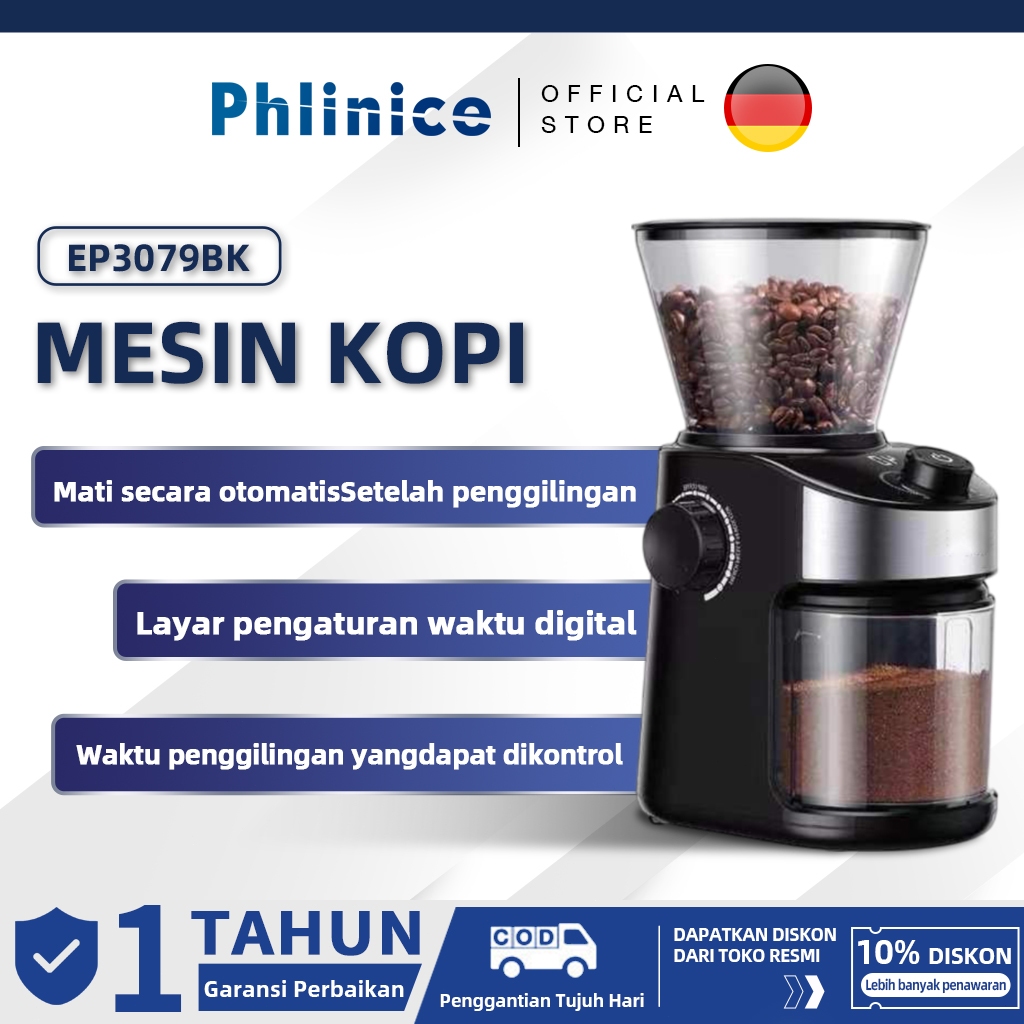 Phlinice Penggiling Biji Kopi Elektrik Dengan Nomor Yang Dapat Dilepas, Mesin Kopi Penghitung Waktu Otomatis Kecil Rumah