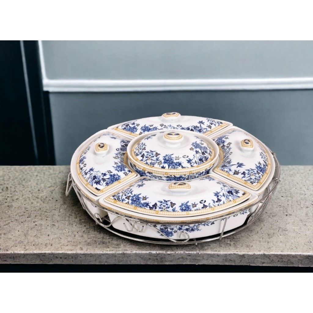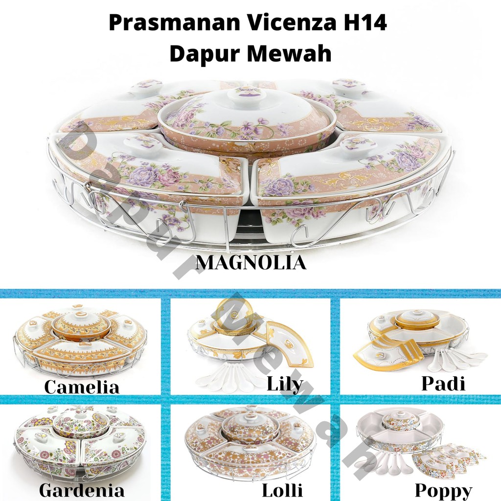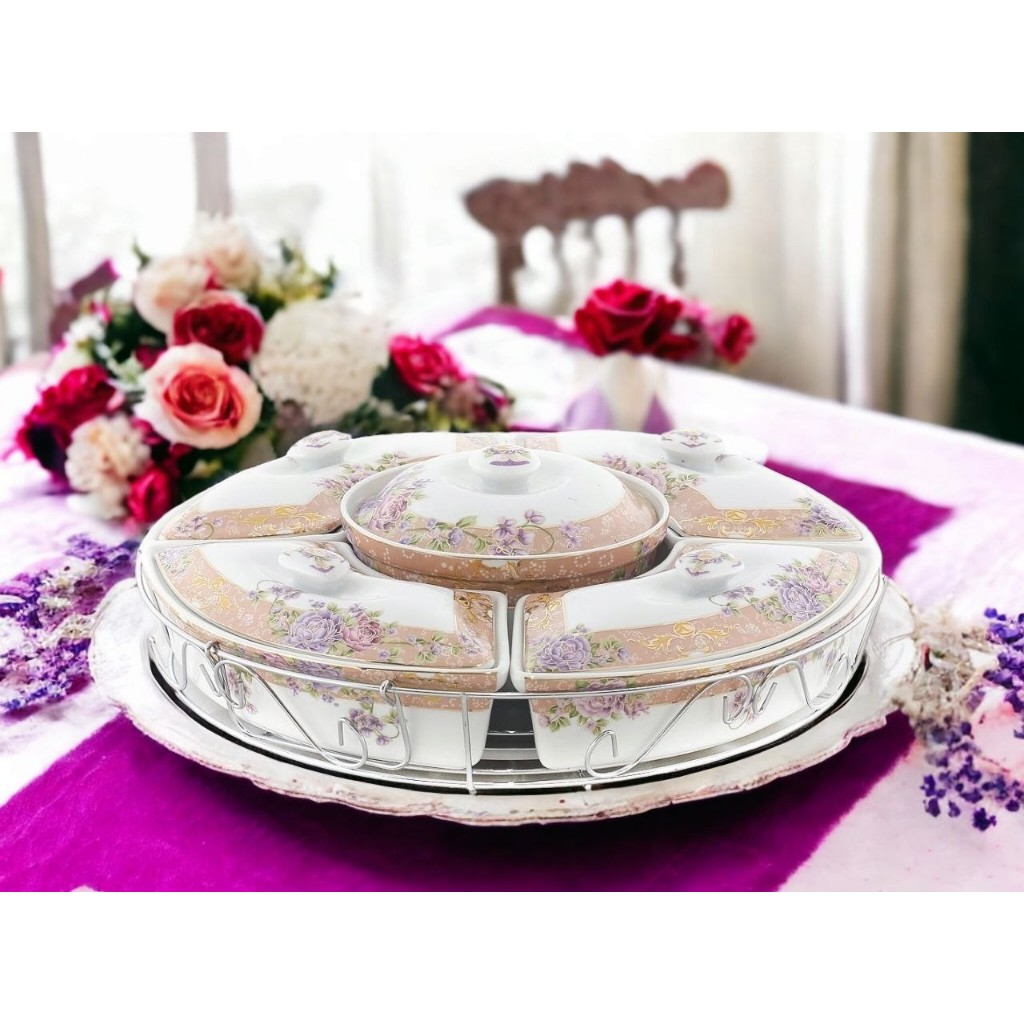 prasmanan keramik bulat vicenza original - H14 garansi pecah! + 5 buah sendok dan rak roda pemutar / terlaris original V
