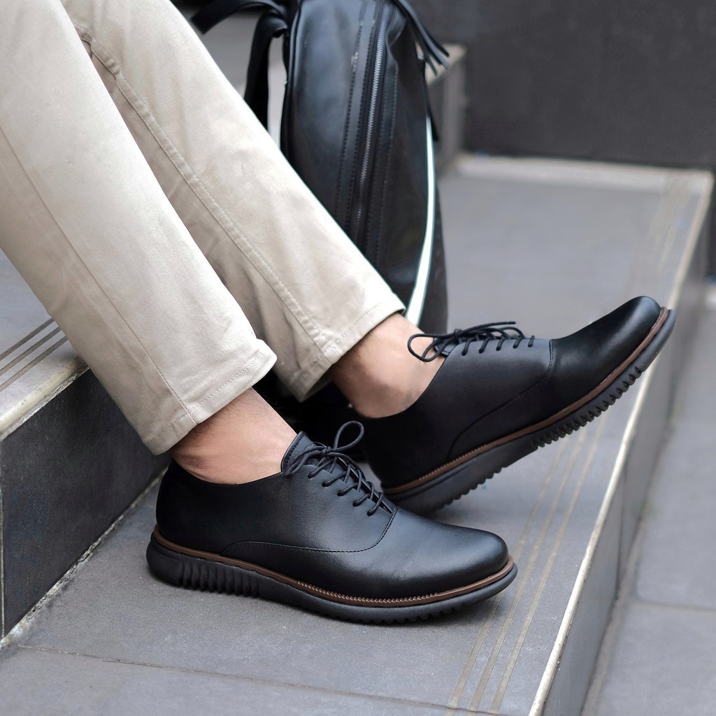 LONDON BLACK - (KULIT ASLI) Sepatu Pantofel Pria Oxford Formal Kerja Kantor Kenzios x Sneakers Pedia