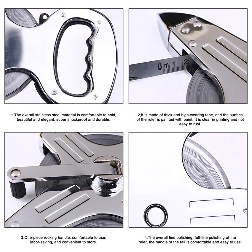 100m / 50m Meteran Tancap Tanah bahan Stainless Steel Meteran Roll Plat Besi Meteran Gulung