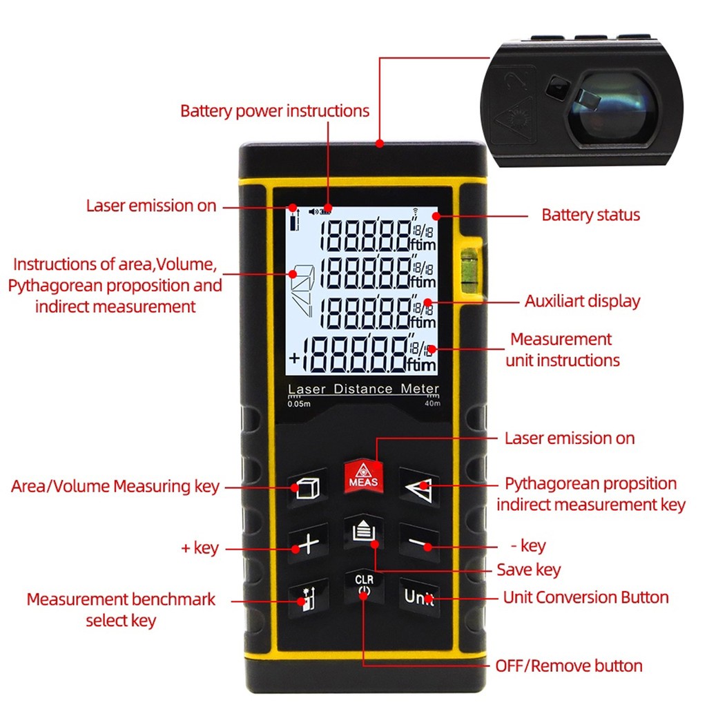 Meteran Laser Digital 40M - Alat Ukur Jarak Laser Rangefinder Jarak 40 Meter - Pengukur Panjang Area Volume Presisi - La
