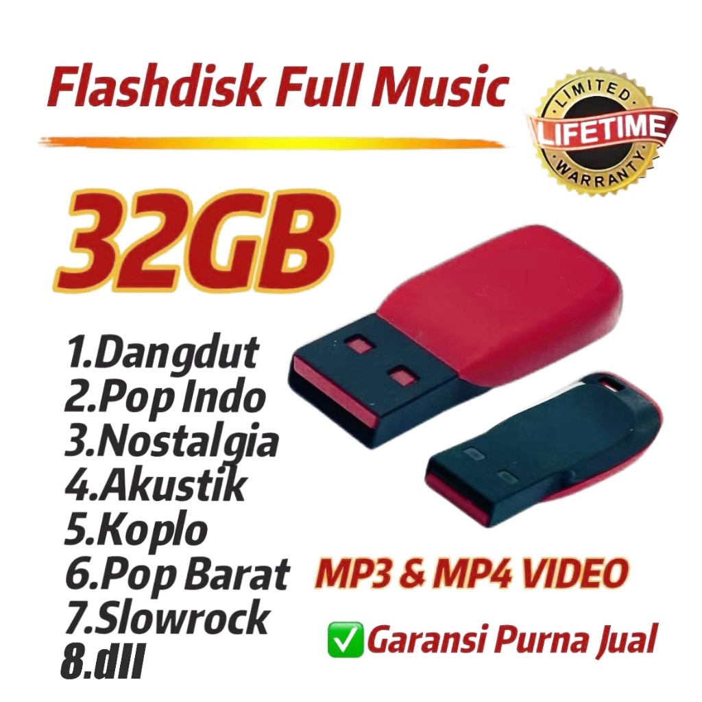 Flashdisk 32GB Isi Penuh Musik Lagu Video MP3 MP4 Untuk Mobil Speaker dll OTG