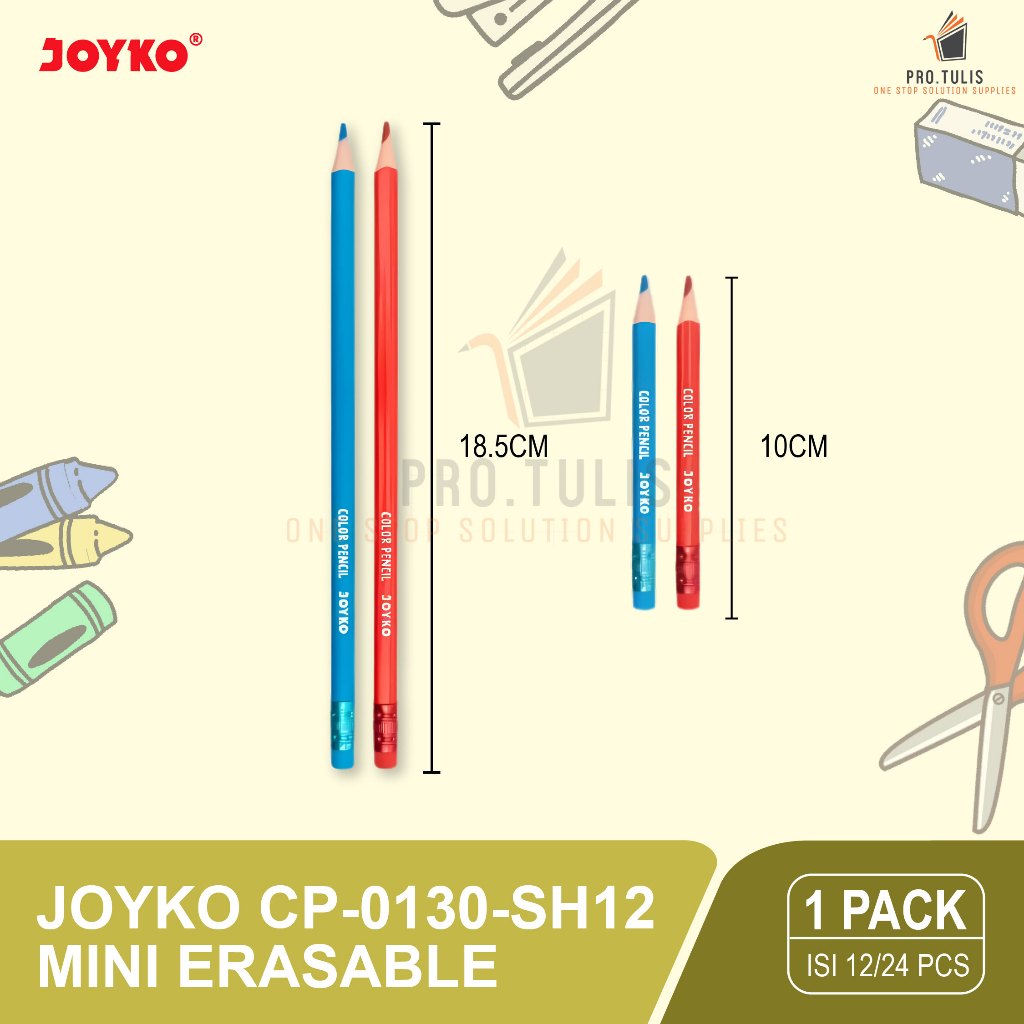 Pensil Warna BISA HAPUS JOYKO 12 Warna Pendek-Panjang / Pensil Mewarnai / Coloring Pencil