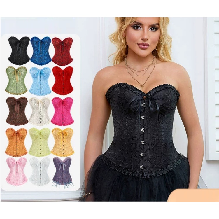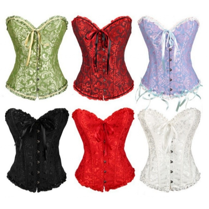 819 Jacquard Floral Corset Overbust Women Lace Up Korset Plastic Boned Bustier Outfit