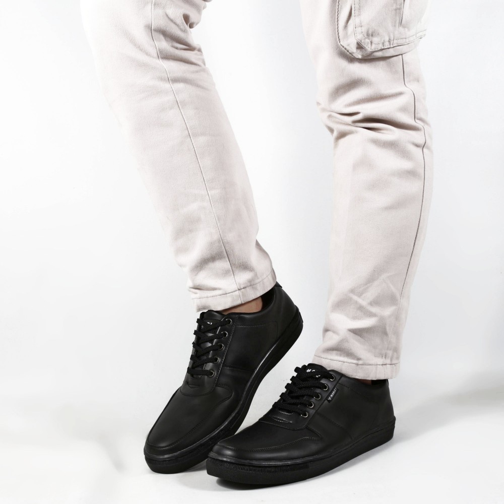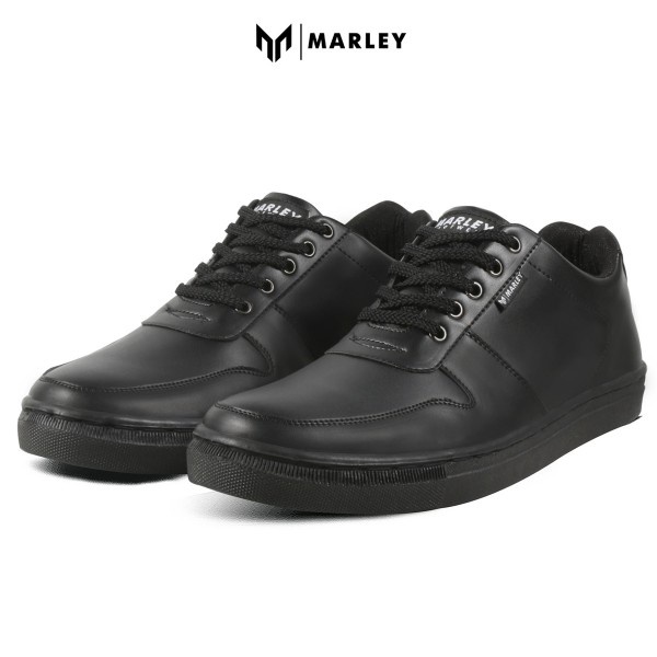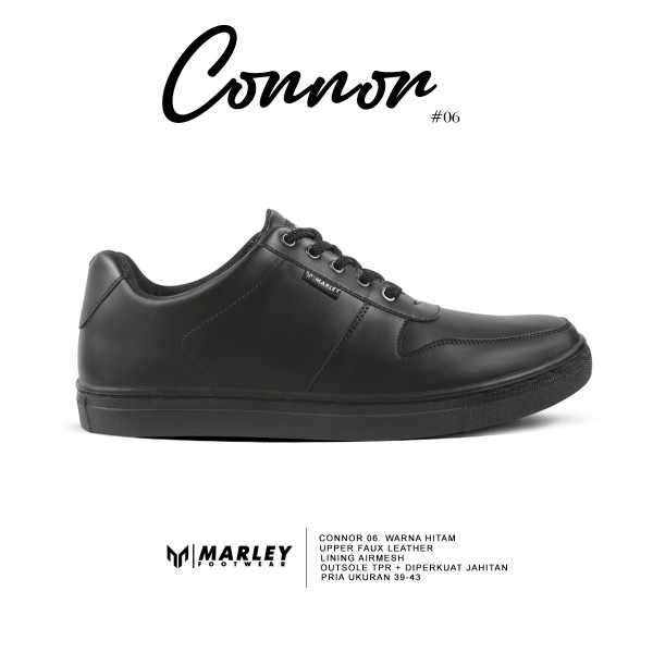 Marley Connor 06 - Marley Sepatu Sneakers Pria Casual Kerja Kantor Warna Hitam Kulit Sintetis