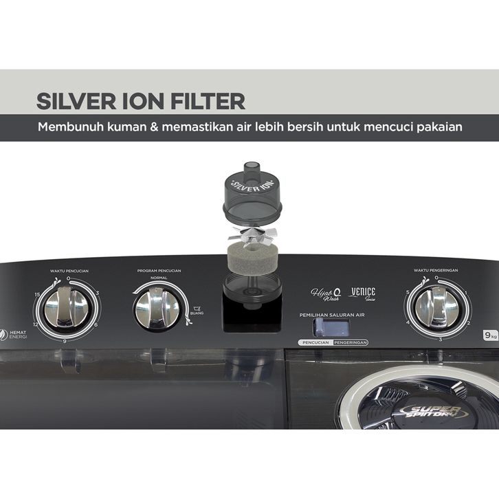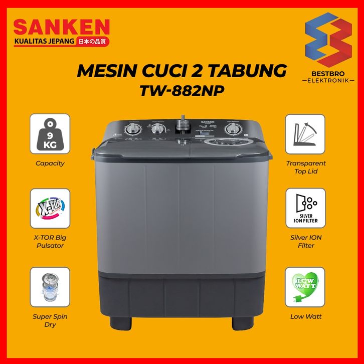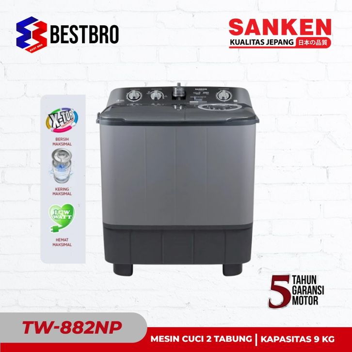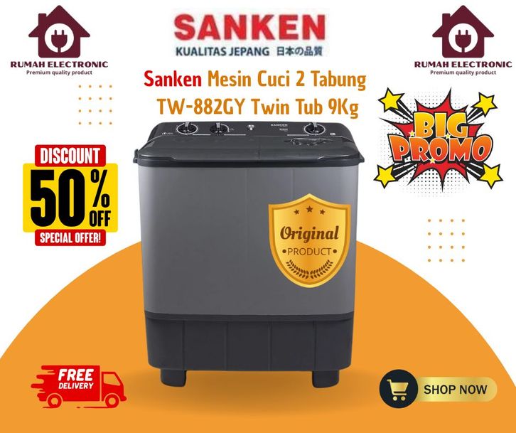 Mesin Cuci 2 Tabung Sanken Mesin Cuci 9kg Sanken TW-882GY Terbaru Sanken Mesin Cuci Twin Tube Official Store Sanken