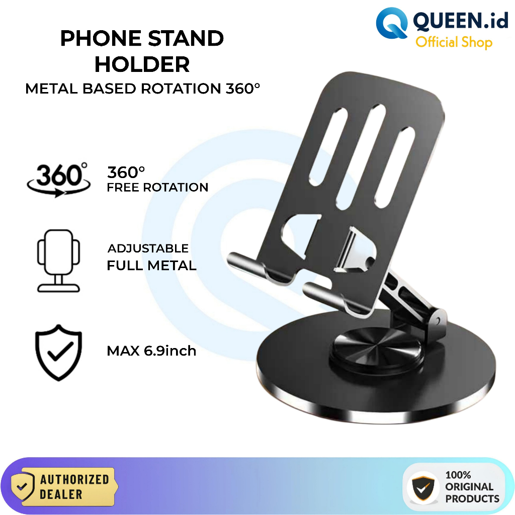 QUEEN Phone Stand 360 Rotation Foldable Metal Holder Rotasi Max 6.9" Slim Ultrathin