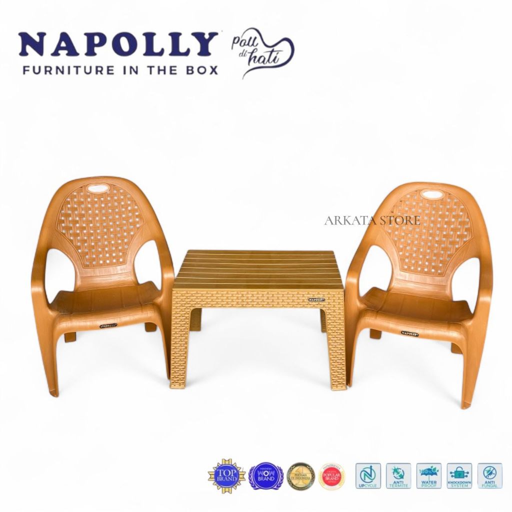 Kursi Santai Napolly 932 / Kursi Santai Plastik / Kursi Teras / Kursi Taman 1 Set 2 Kursi BIG N932P + MAPAN 45 - 1SET