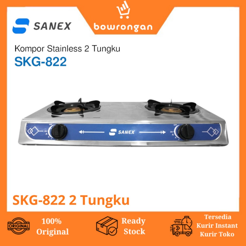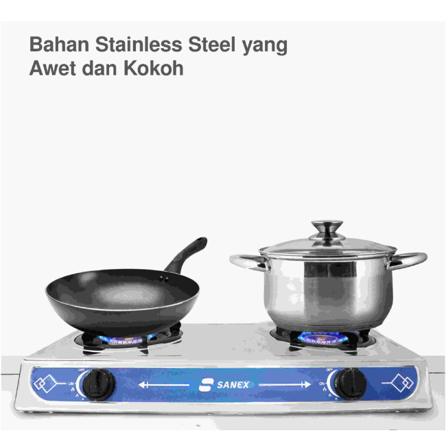 Sanex Kompor Gas 2 Tungku - Stainless Steel Pembakaran Efisien SKG-822