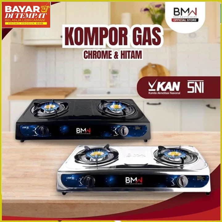 Terbaru kompor gas 2 tungku BMW KG 882T KG 882S kompor gas 2 tungku teflon atau stainless Promo