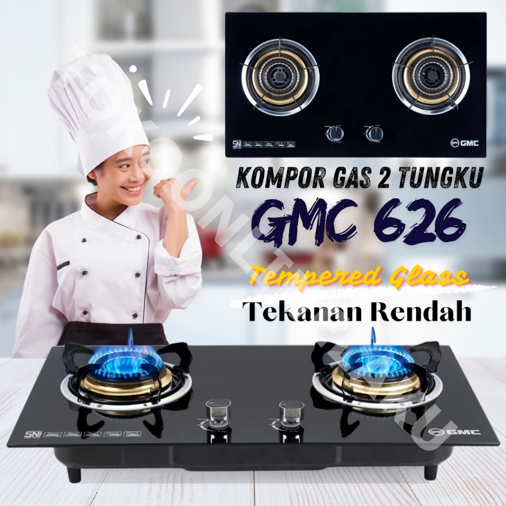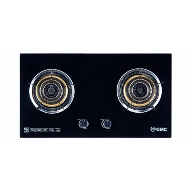 Kompor Gas 2 Tungku GMC 626 kompor Kaca Tempered Glass 2in1 Tanam dan Meja